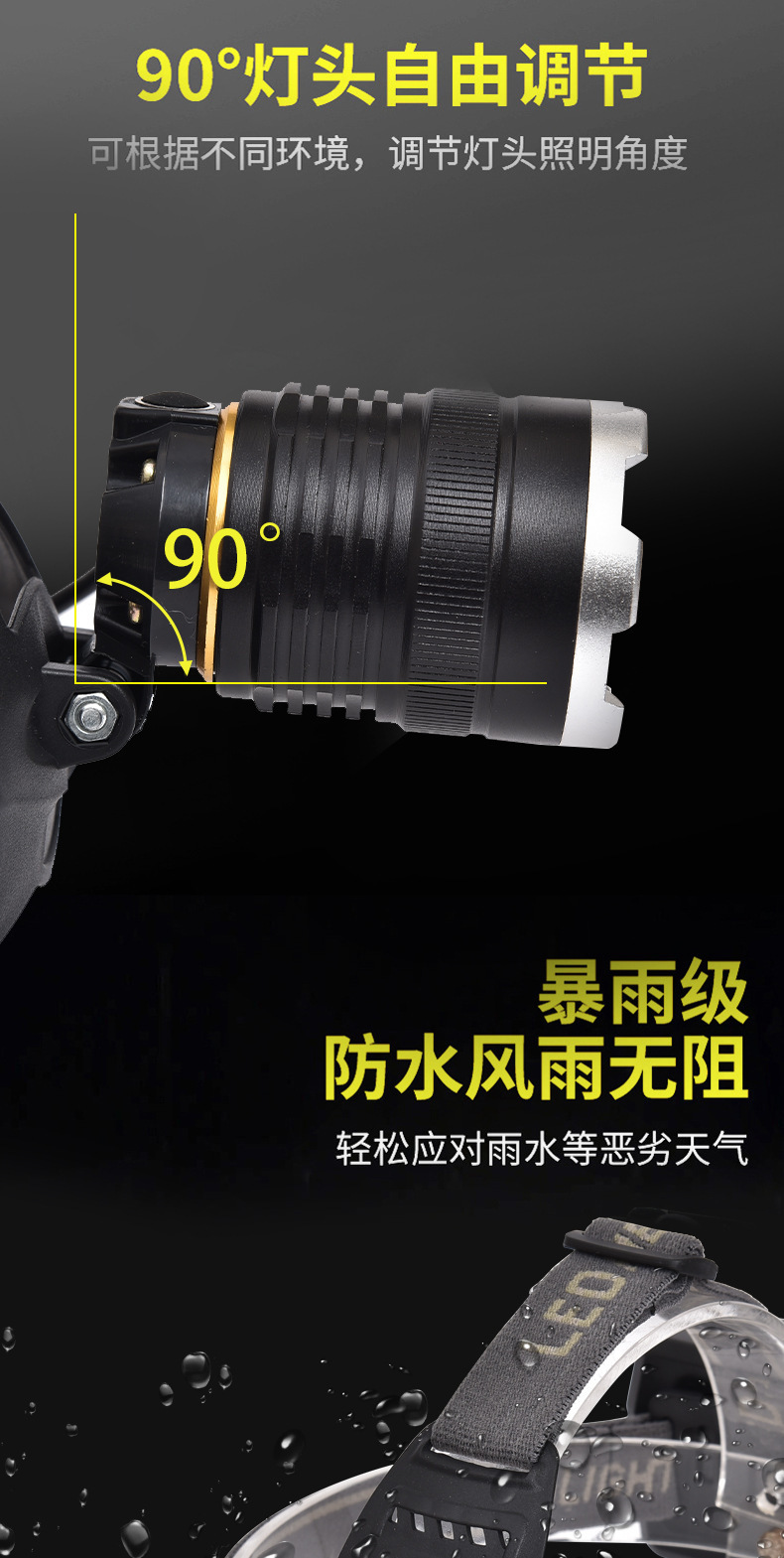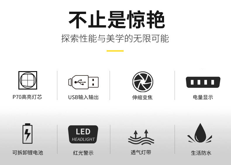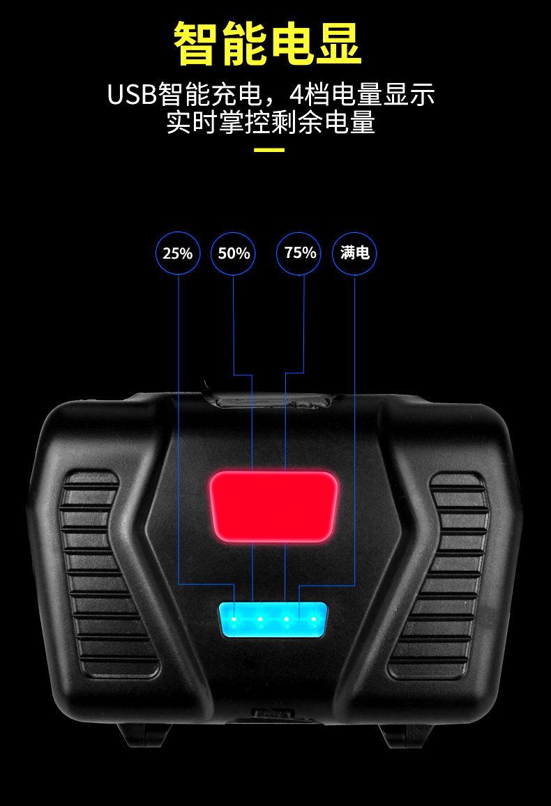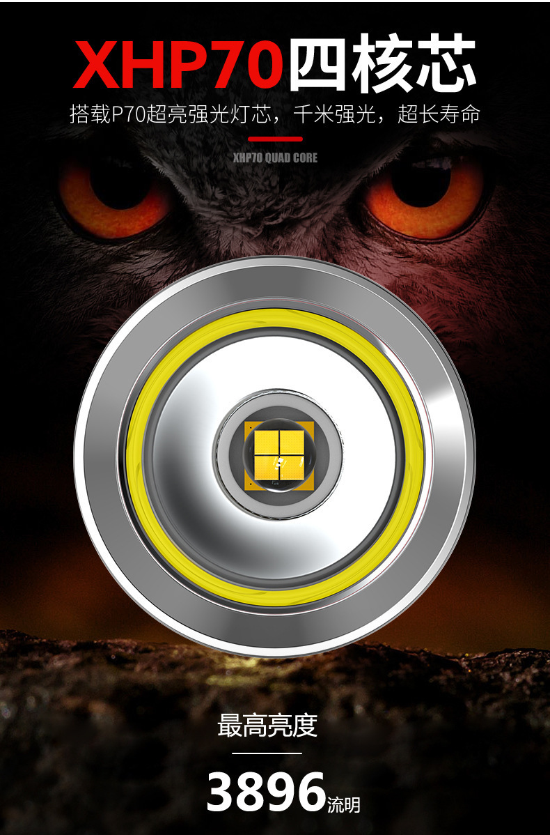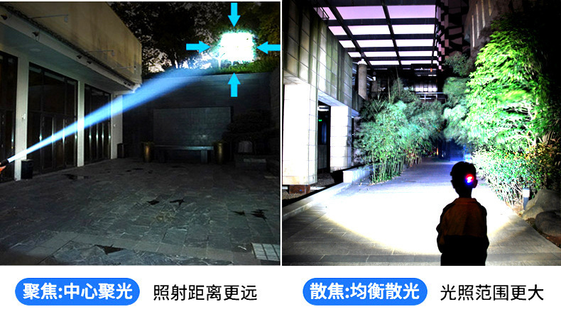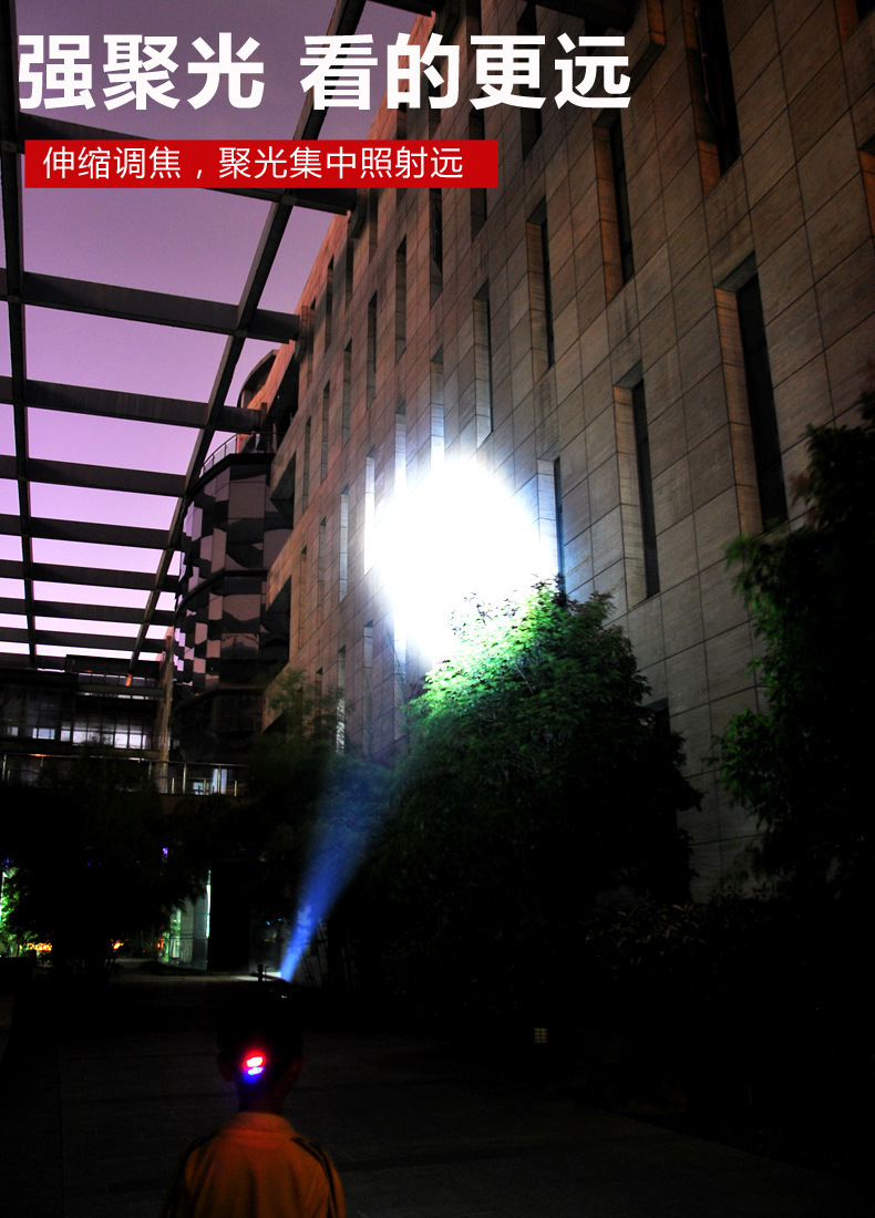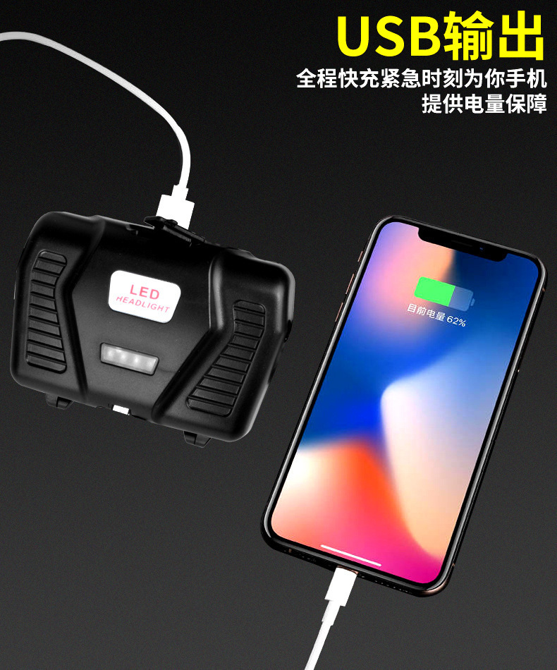 White laser zoom headlamp, high-intensity charging head-mounted long-range miner's lamp, LED fishing lighting flashlight P70 for both outdoor and indoor use