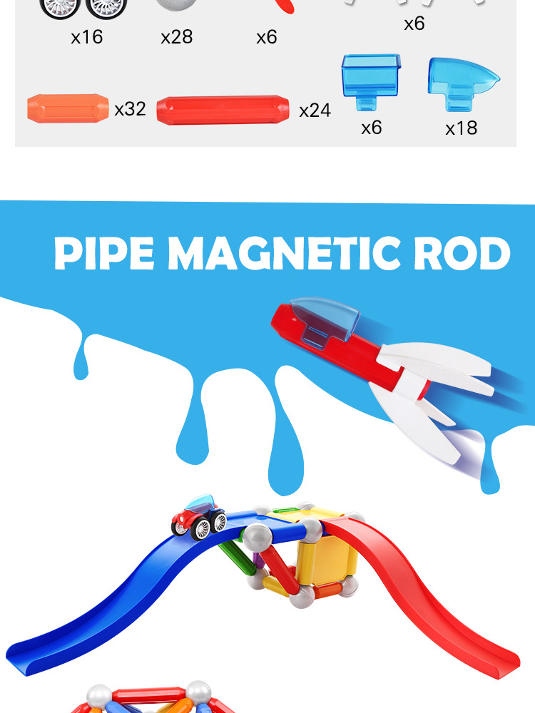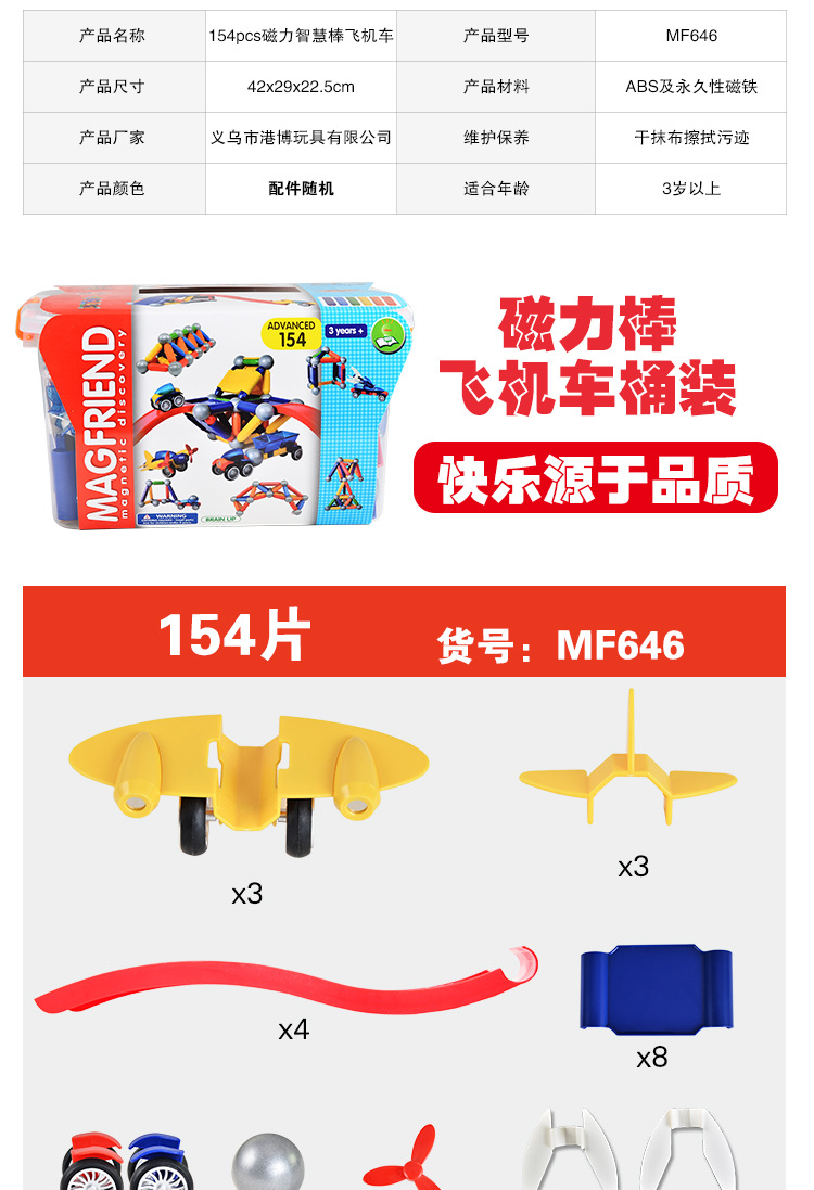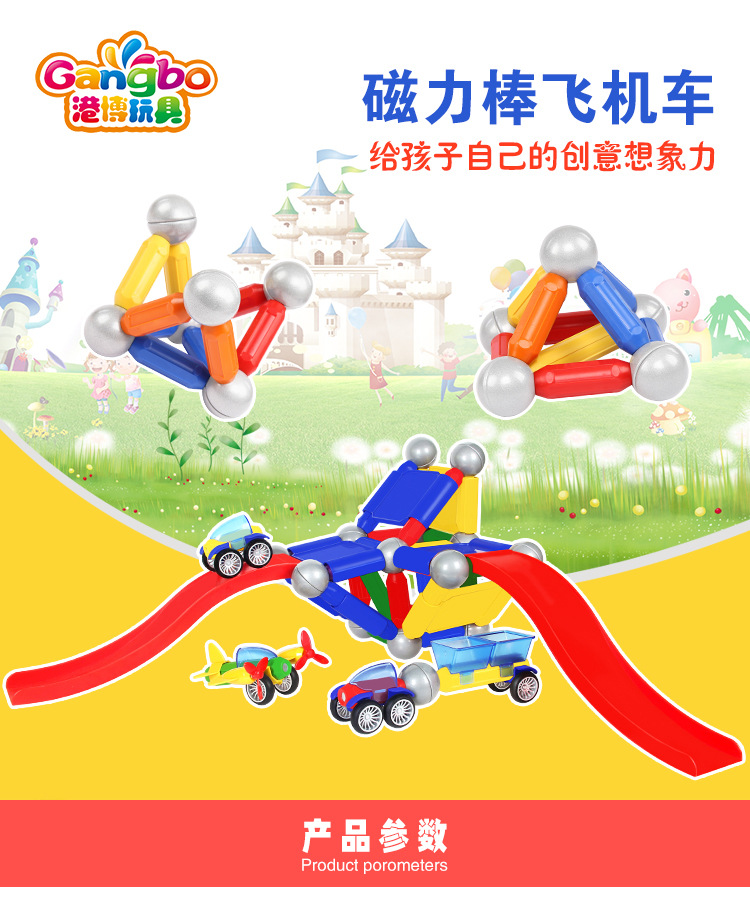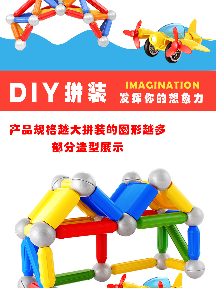 Wholesale 154pcs barrel-packed aircraft magnetic rod toy sets for children's educational magnetic early education creative assembly building blocks