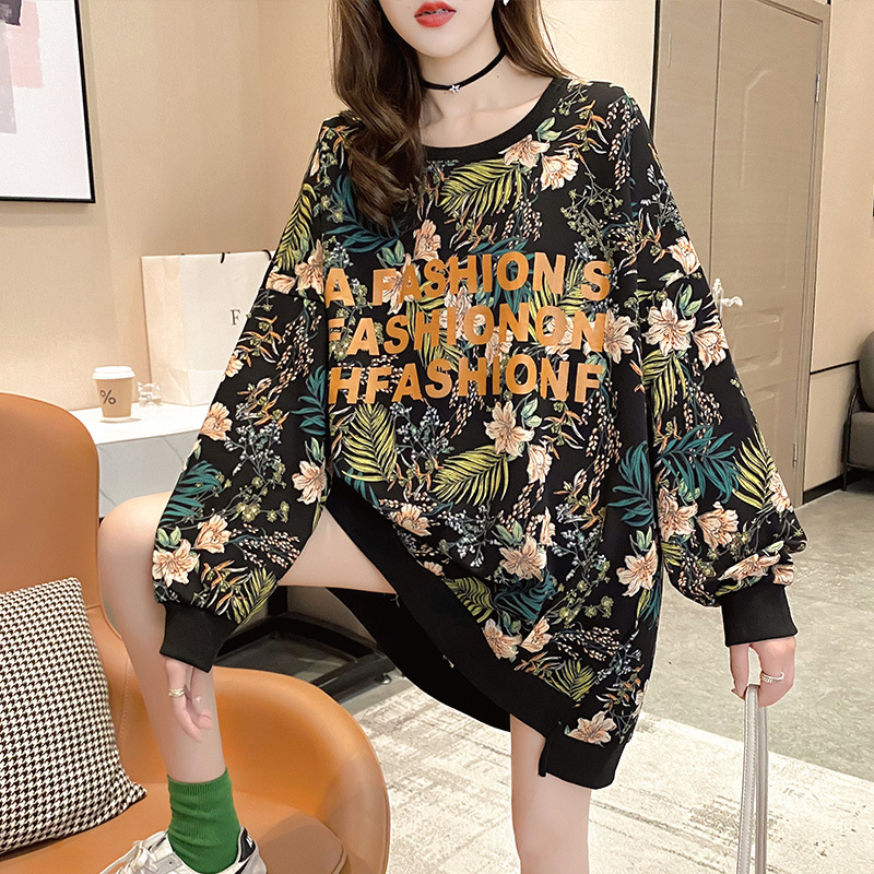 Wholesale 2020 autumn large-sized loose mid-length pullover thin T-shirt top fashionable and stylish hoodie for women