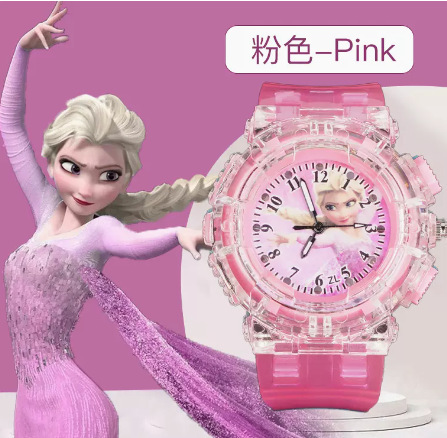 Wholesale 2024 children's silicone quartz watches, Elsa Princess girls' plastic electronic cartoon cute luminous watches