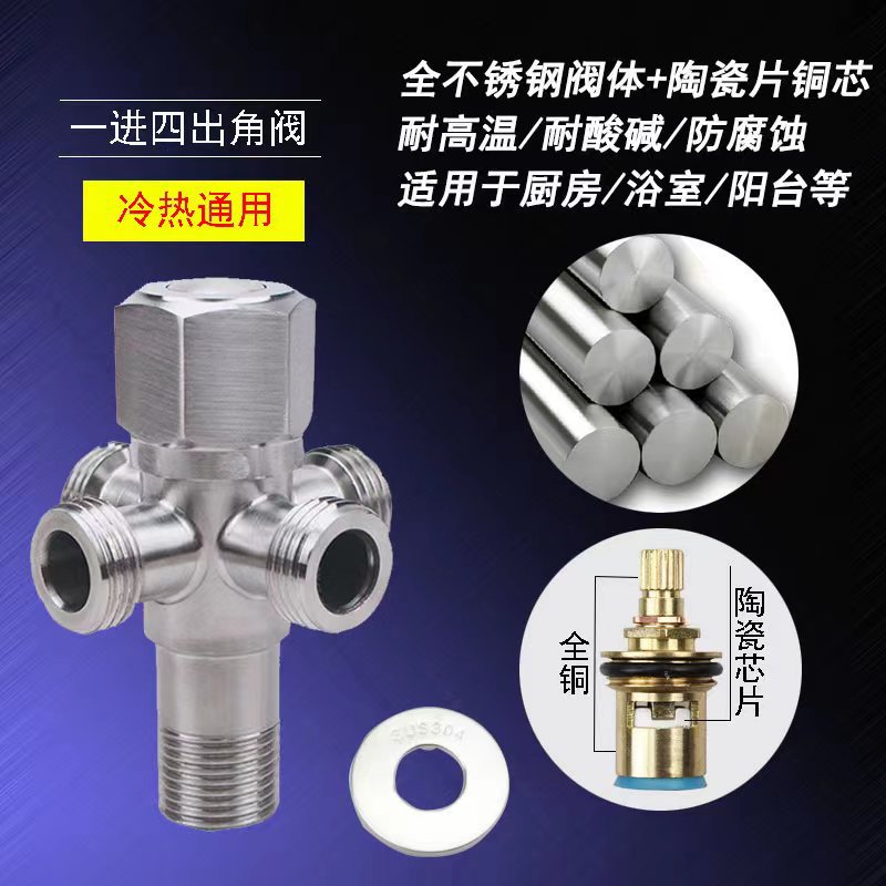 304 one-inlet and four-outlet Angle valve (Copper core and copper rod)