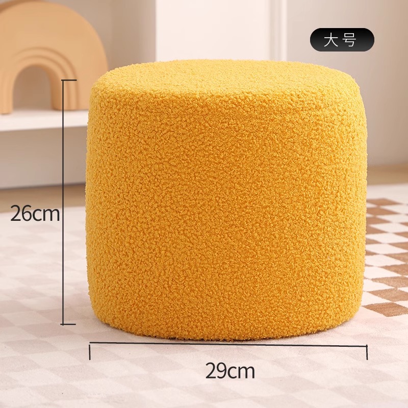 Wholesale Amazon household small stools, low stools, door shoe-changing stools, cute sitting stools, internet-famous teddy fleece round stools, soft seats