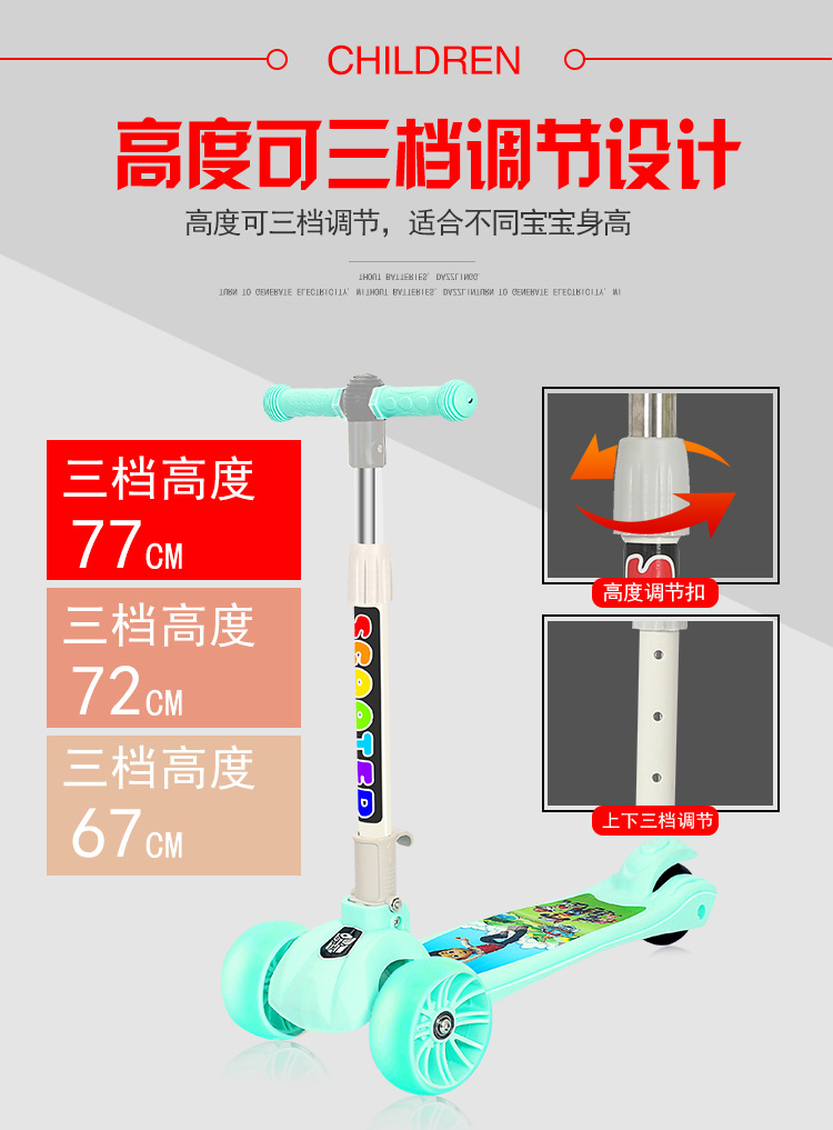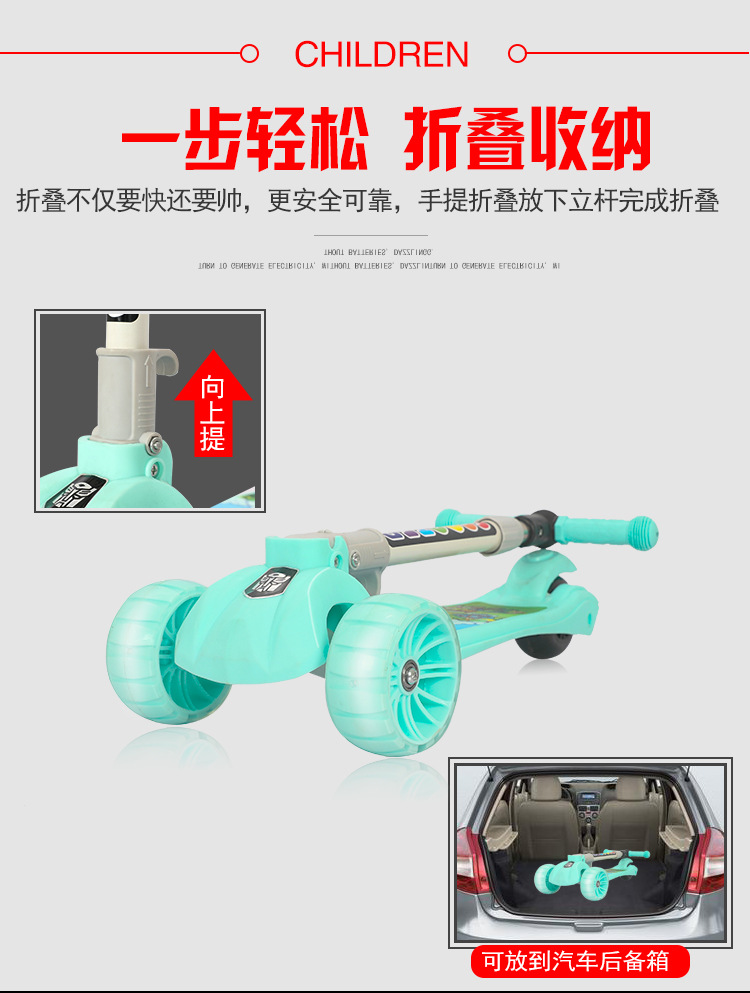 Wholesale and consignment of folding music scooters, children's four-wheel flashing scooters, four-wheel running lights, and bicycle slides