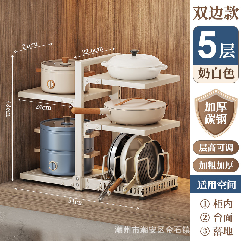 Vertical double-sided pot rack, 3 layers +2 layers, cream white
