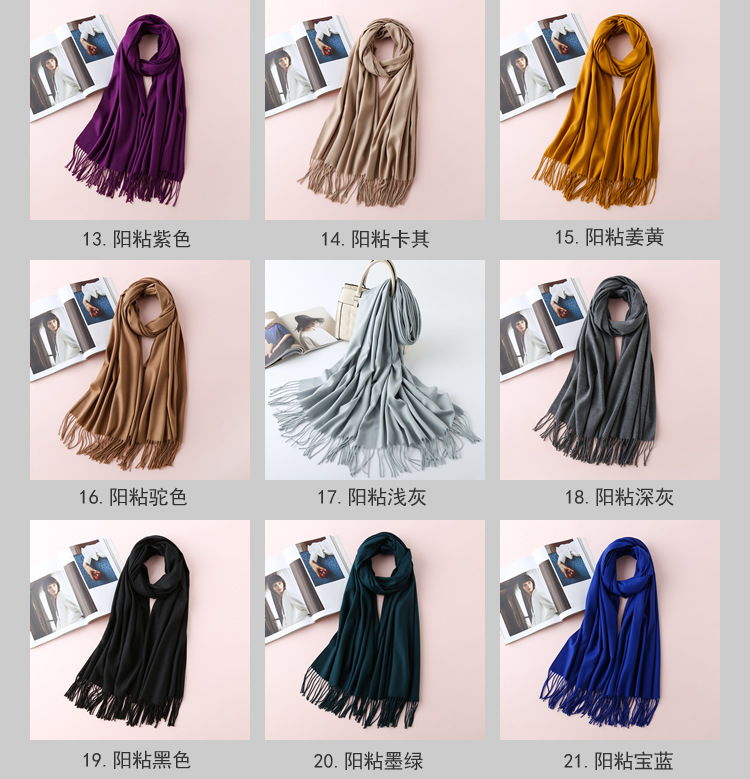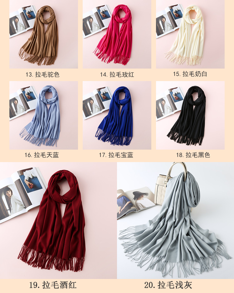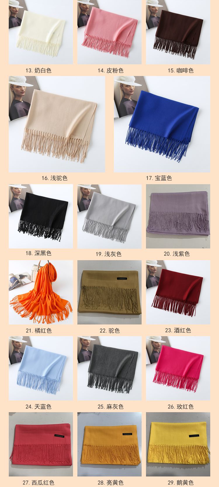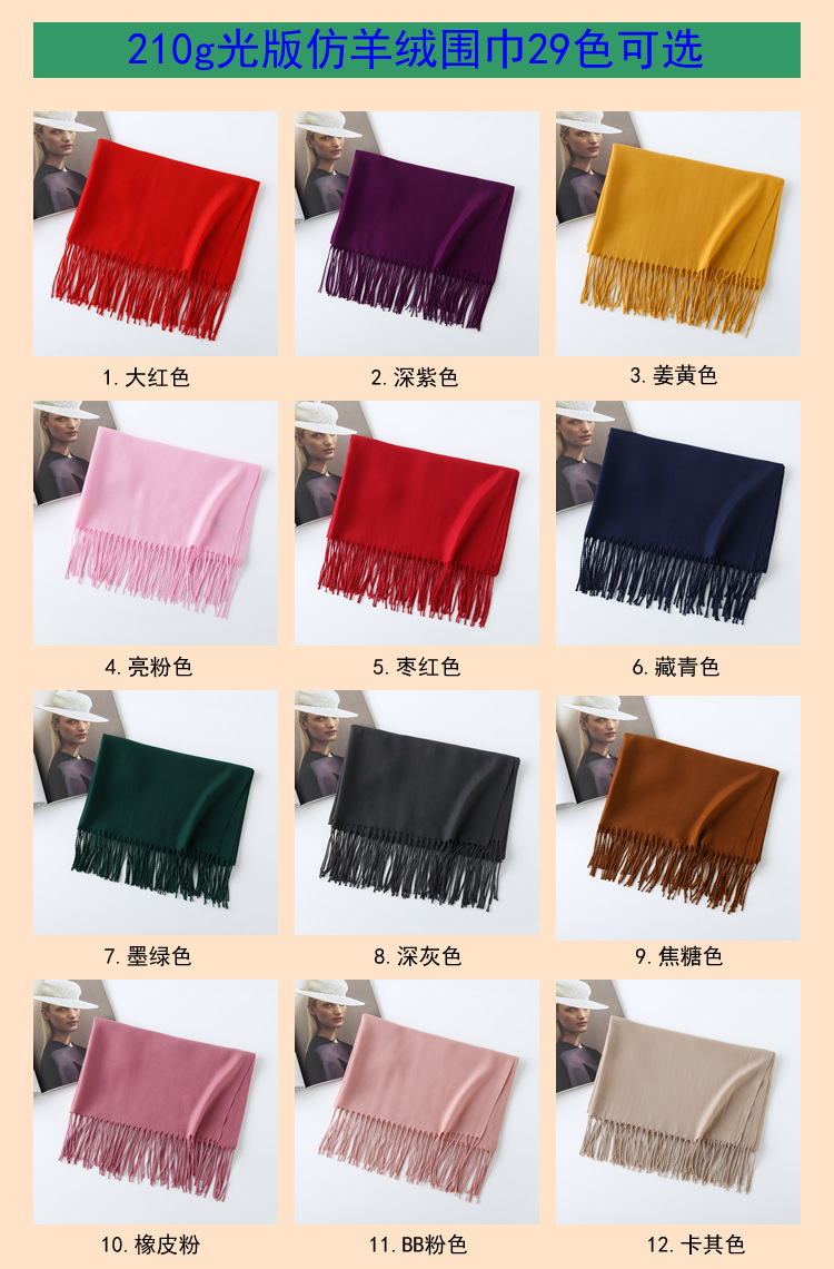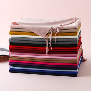 Wholesale and consignment of multiple solid-color faux cashmere scarves, women's single-color thickened warm scarves, shawls, gifts, and large red scarves
