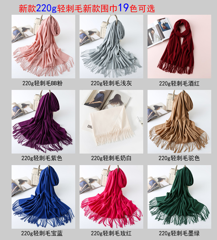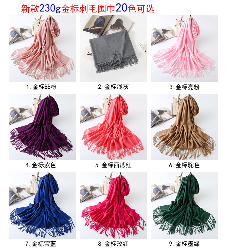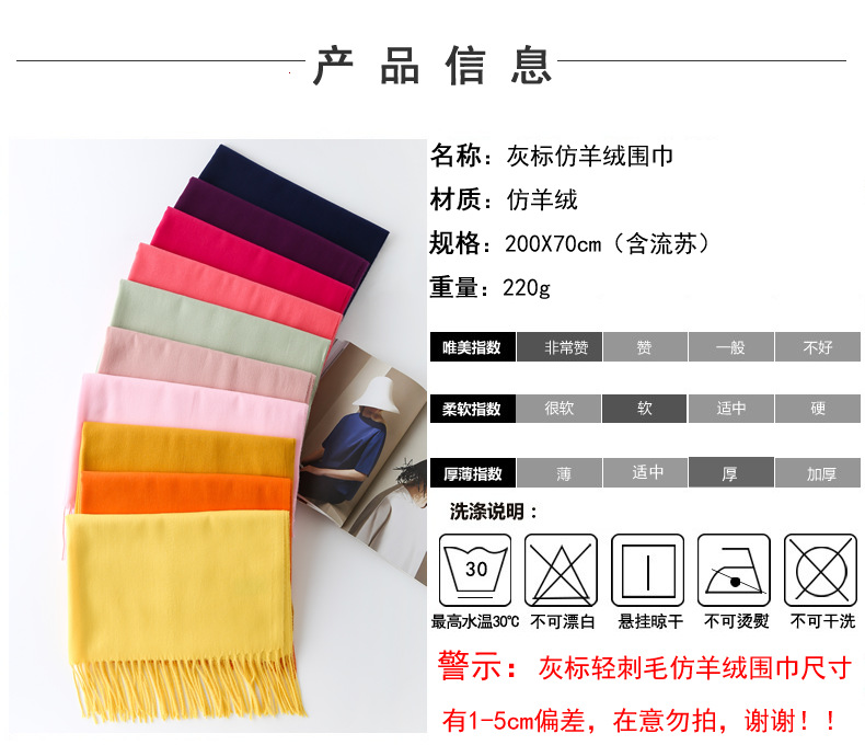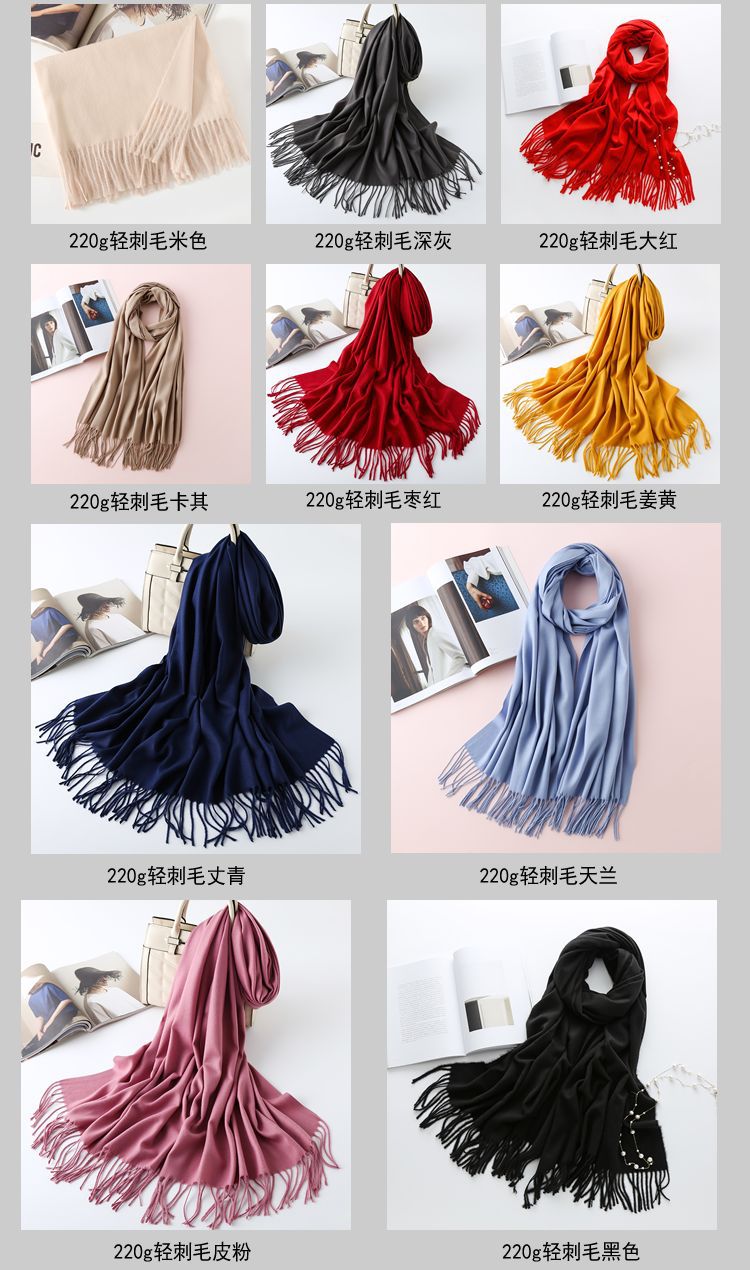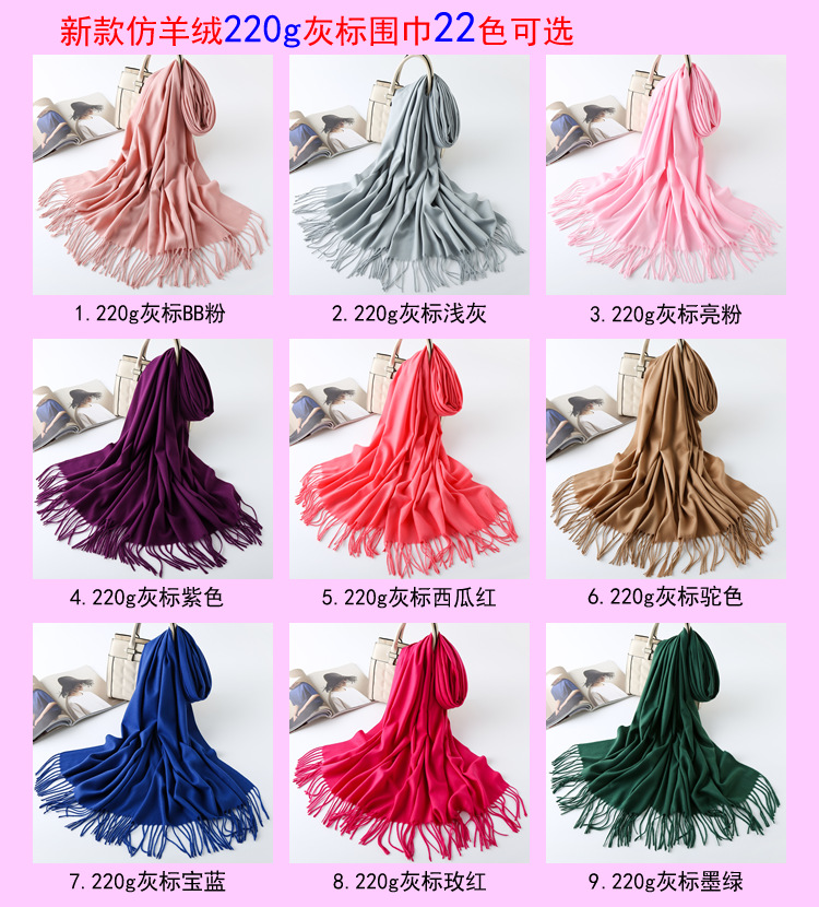 Wholesale and consignment of multiple solid-color faux cashmere scarves, women's single-color thickened warm scarves, shawls, gifts, and large red scarves
