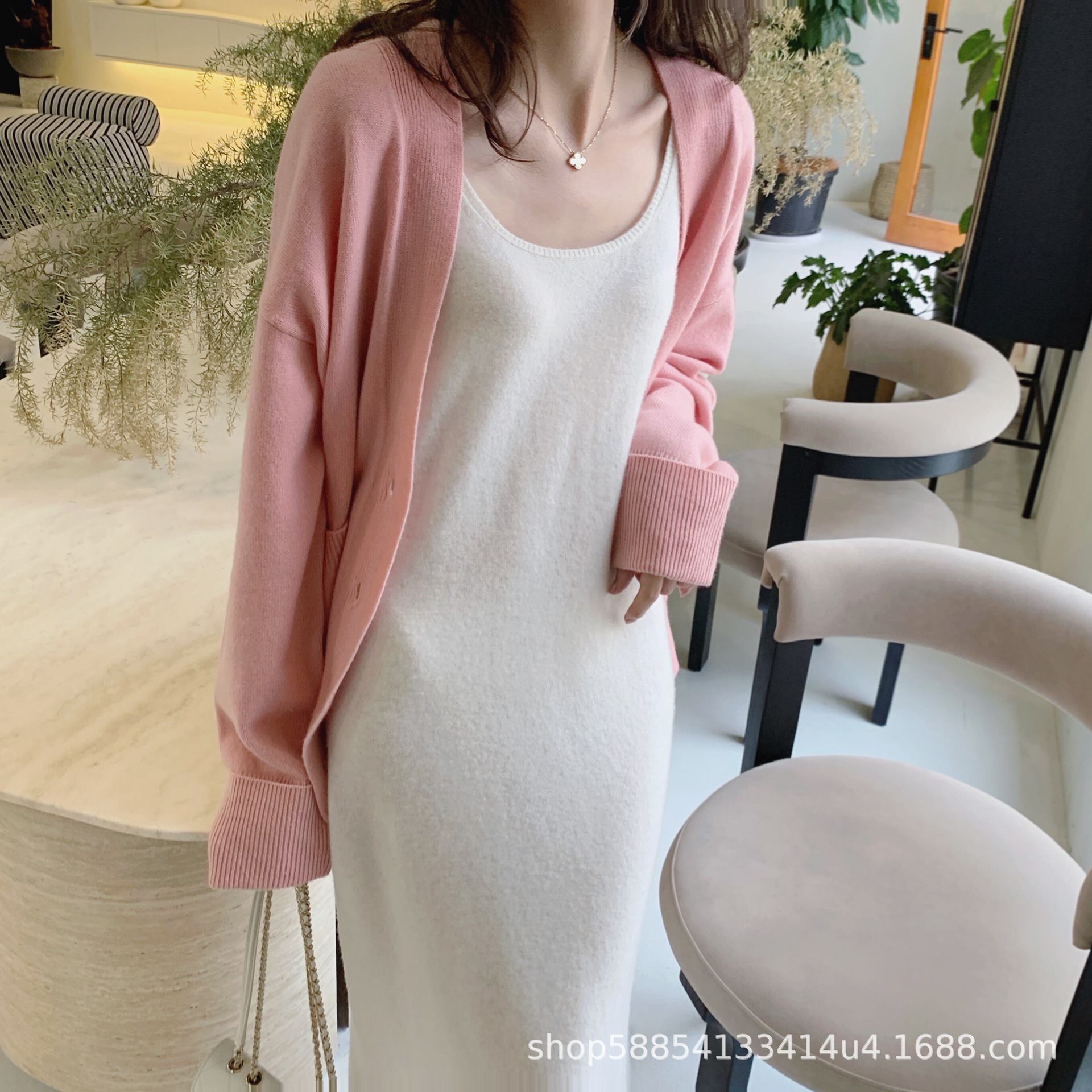 Cashmere halter dress, women's spring and autumn woolen sweater, round-neck pure wool vest dress, mid-length sexy knitted dress