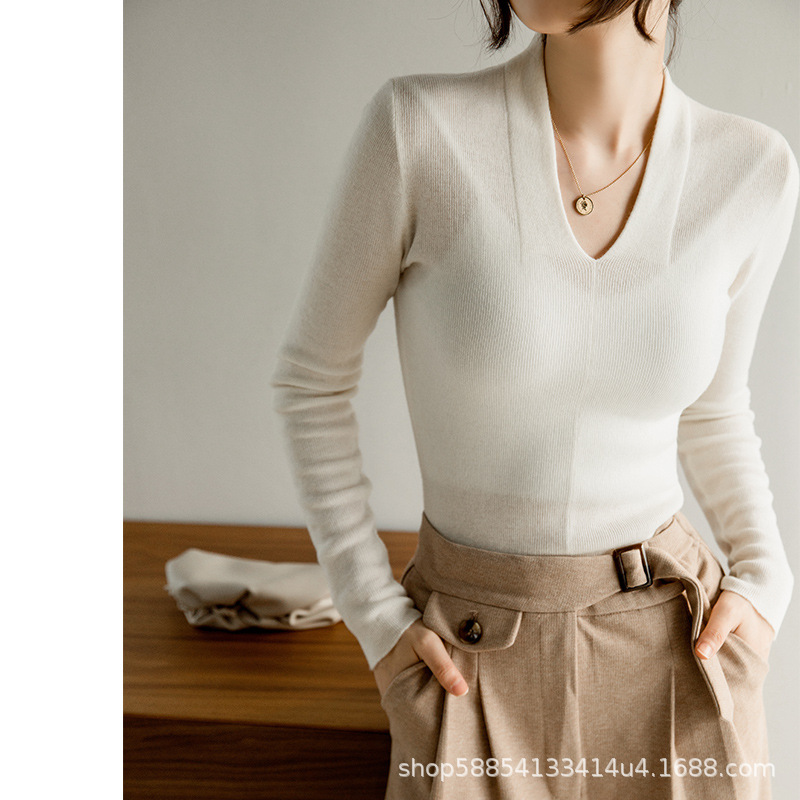 For autumn and winter, Puyuan woolen sweaters, base layers, cashmere sweaters, women's V-neck pullover knitted sweaters, slimming woolen sweaters for women