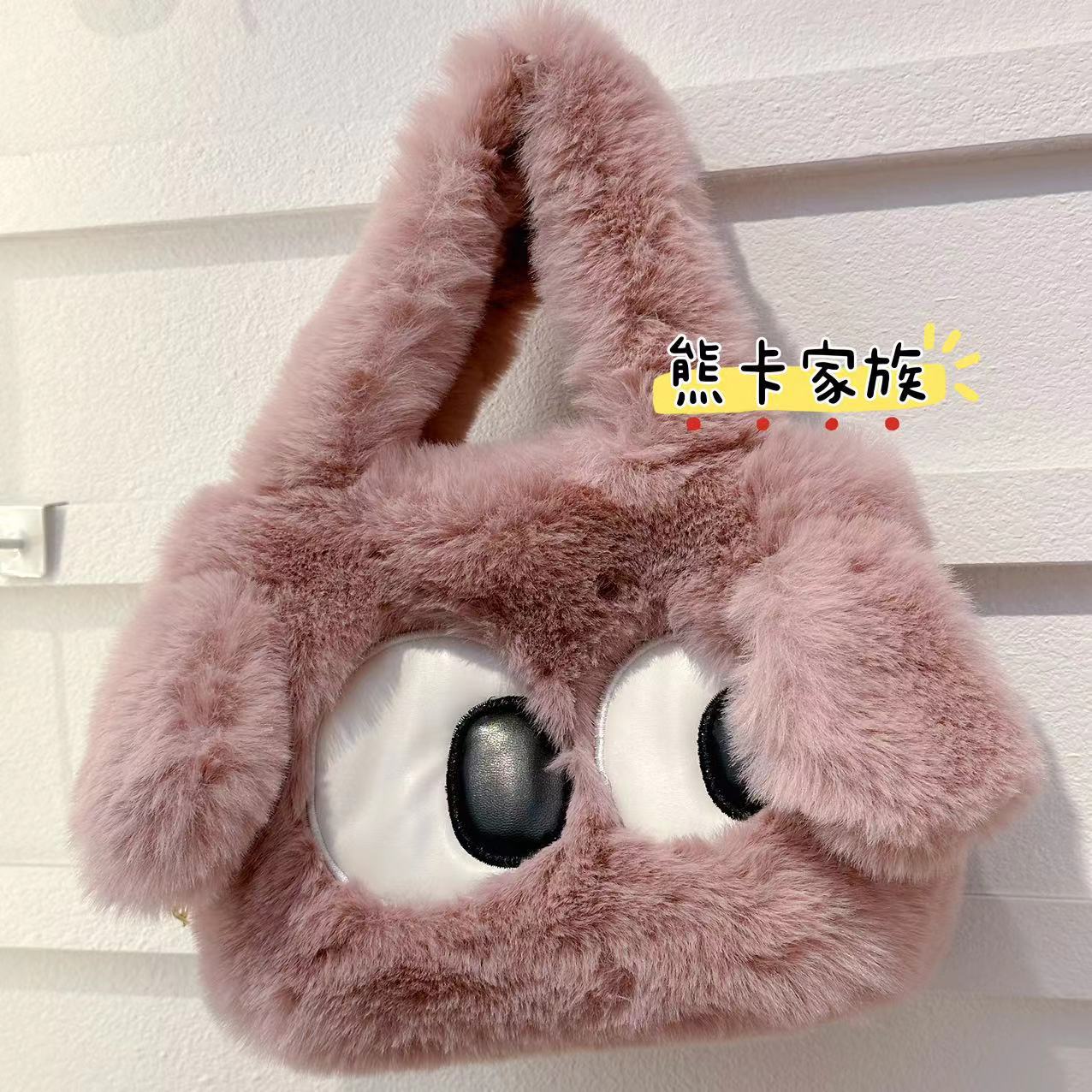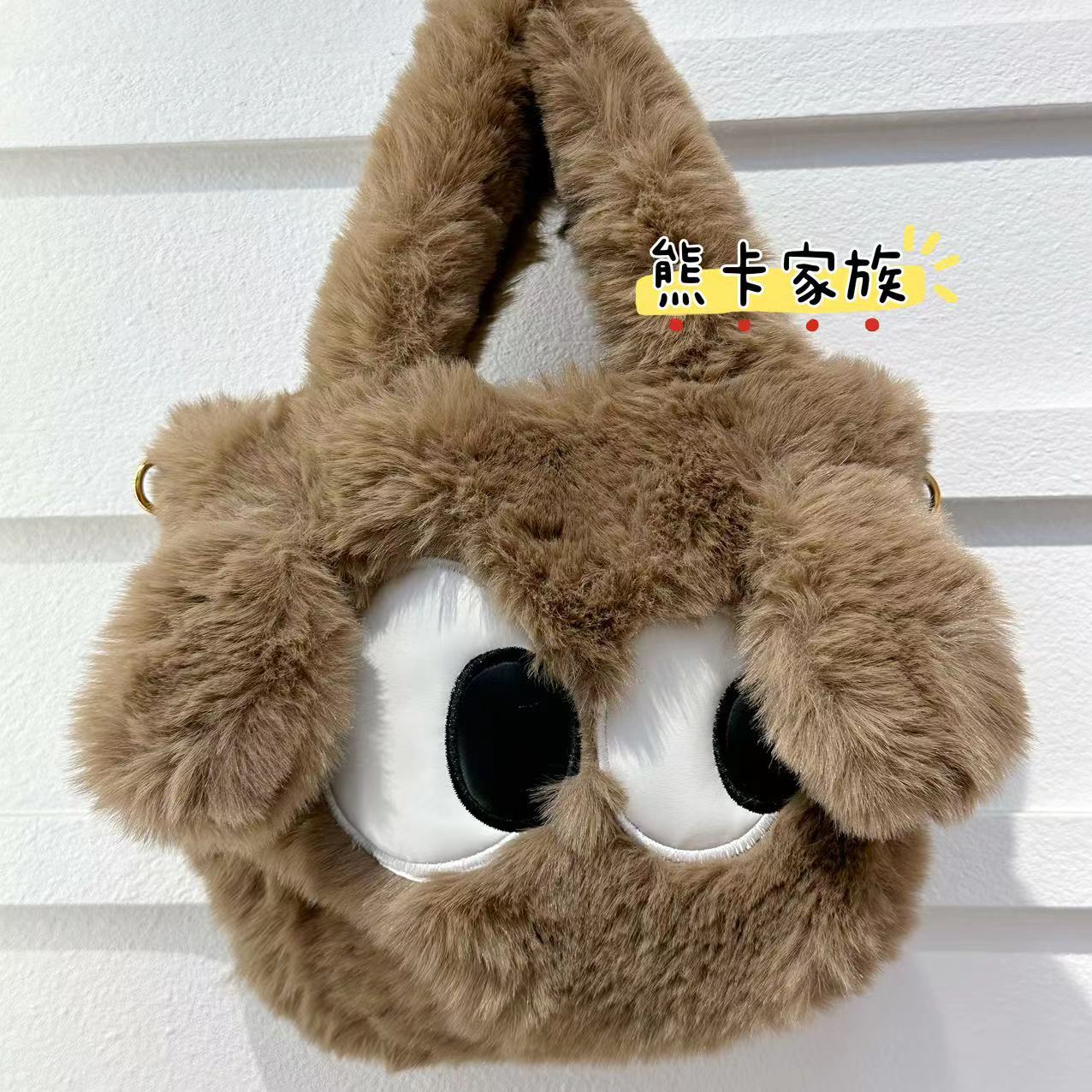 Wholesale and export plush fashionable handbags, niche women's bags, trendy and stylish large-eyed single-shoulder chain bags