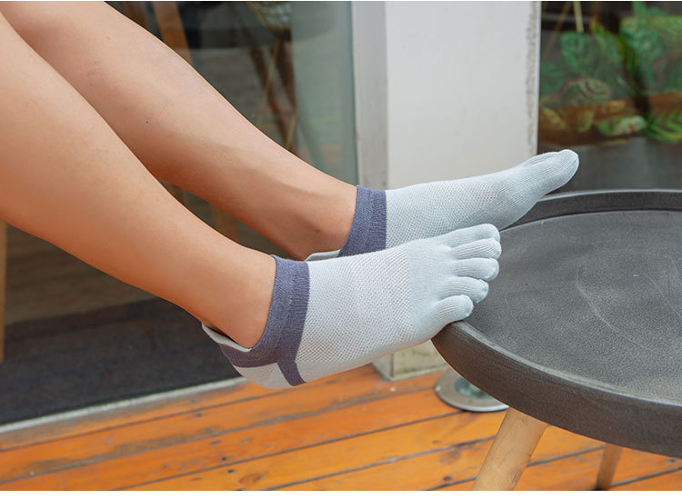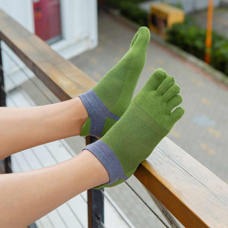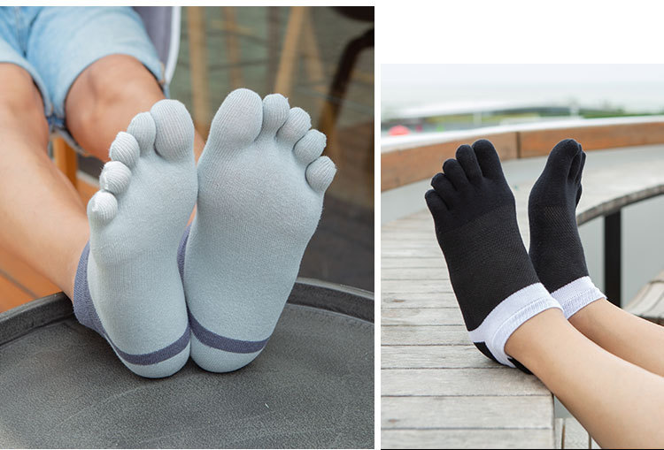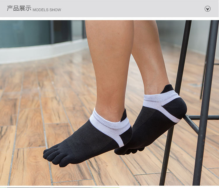 Wholesale and OEM processing of men's cotton thread short-sleeved five-toe socks for spring and summer, low-top boat socks, toe socks