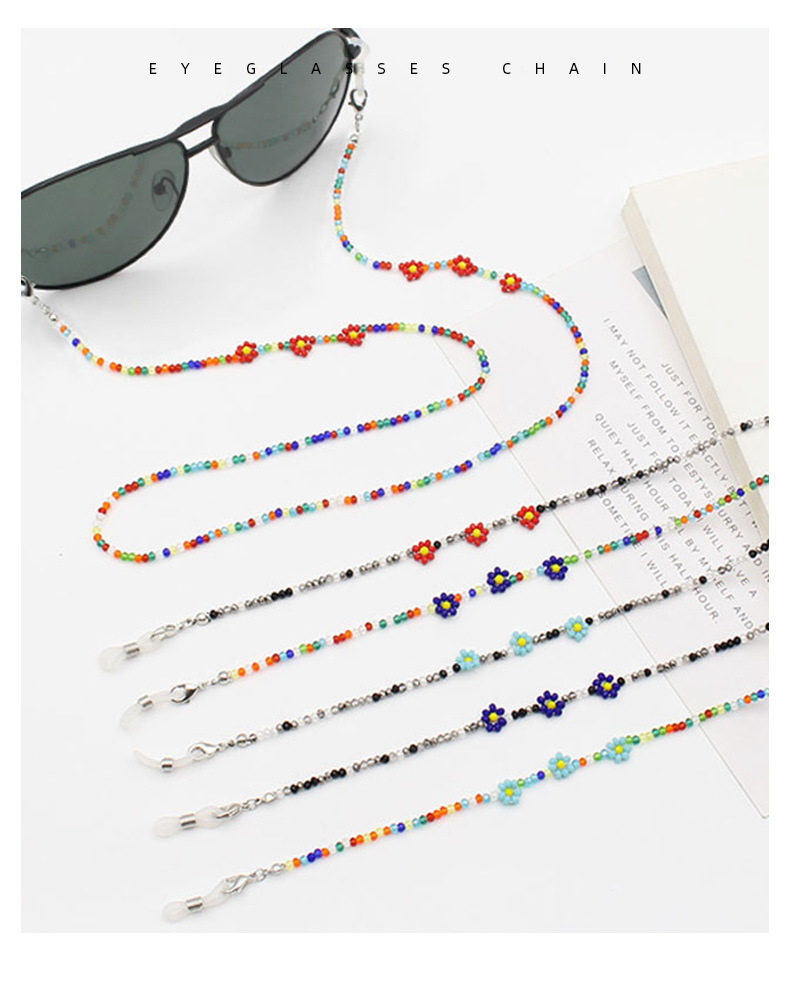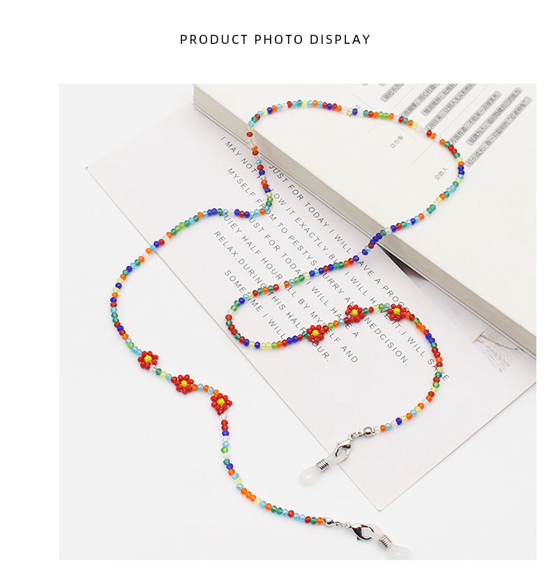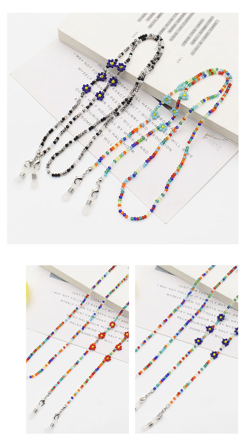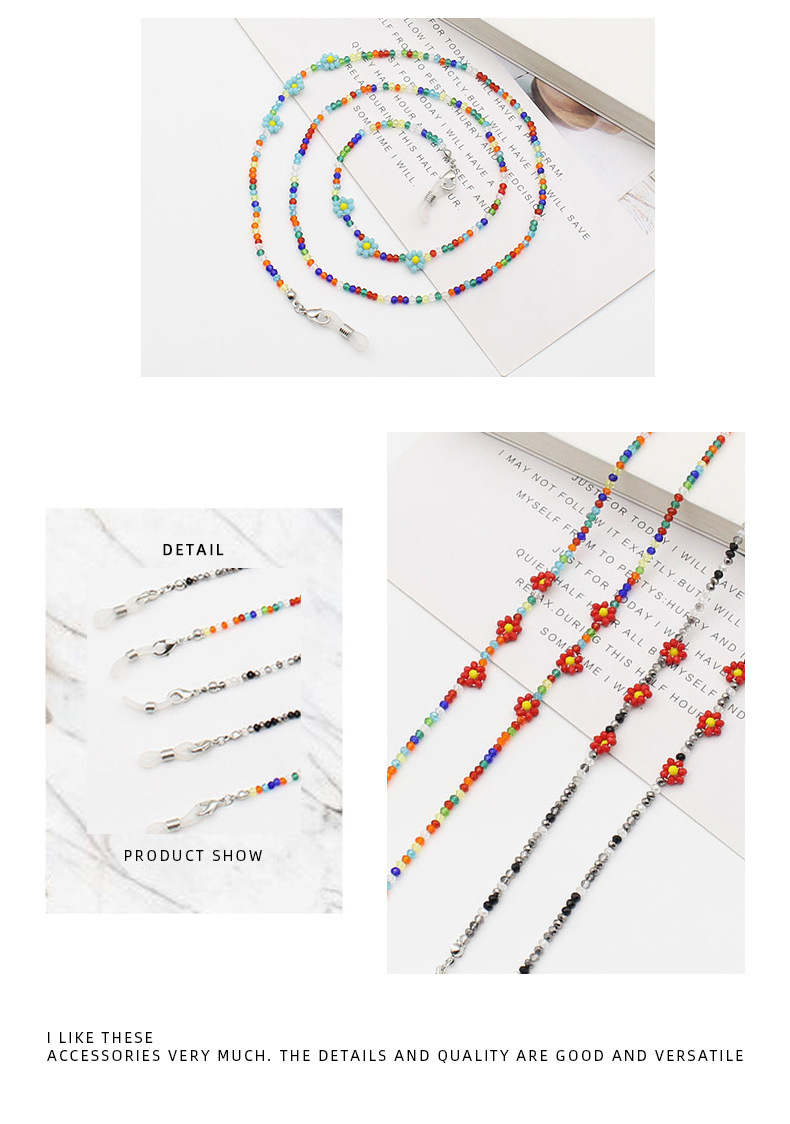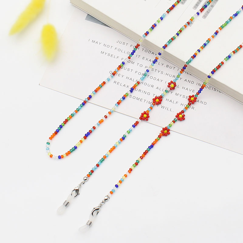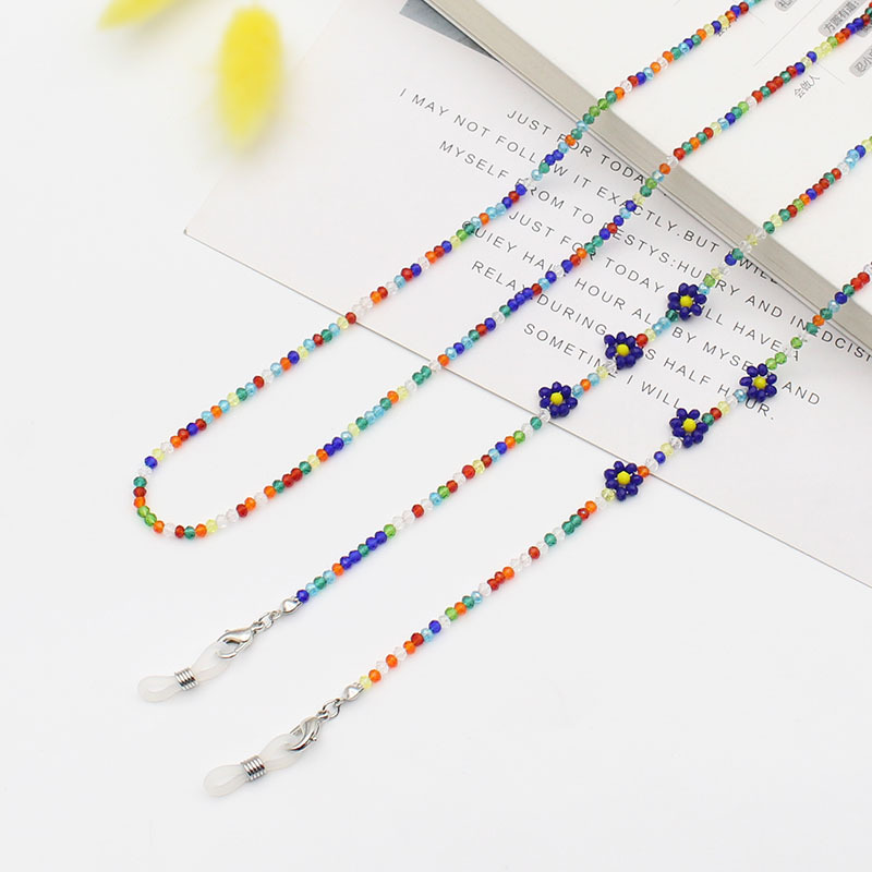 Cross-border new Bohemian colorful crystal flower beaded mask chain glasses anti-drop necklace