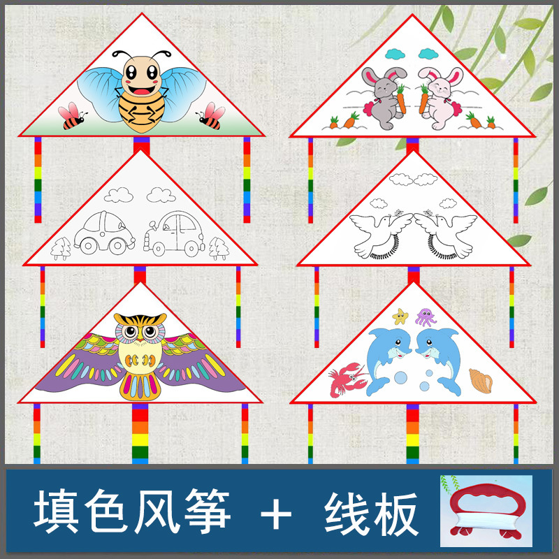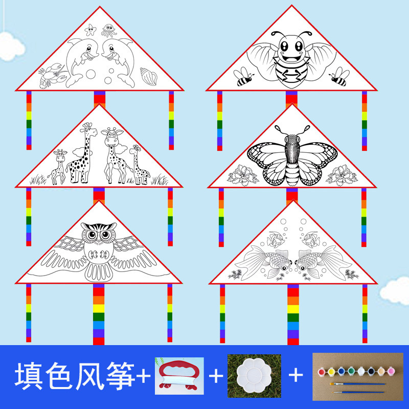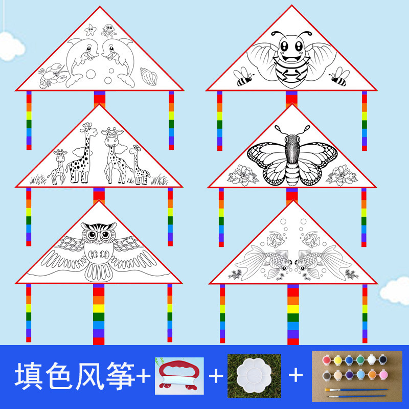 1.4-meter blank triangular kite + 50-meter centerline board + six-color paint + paintbrush