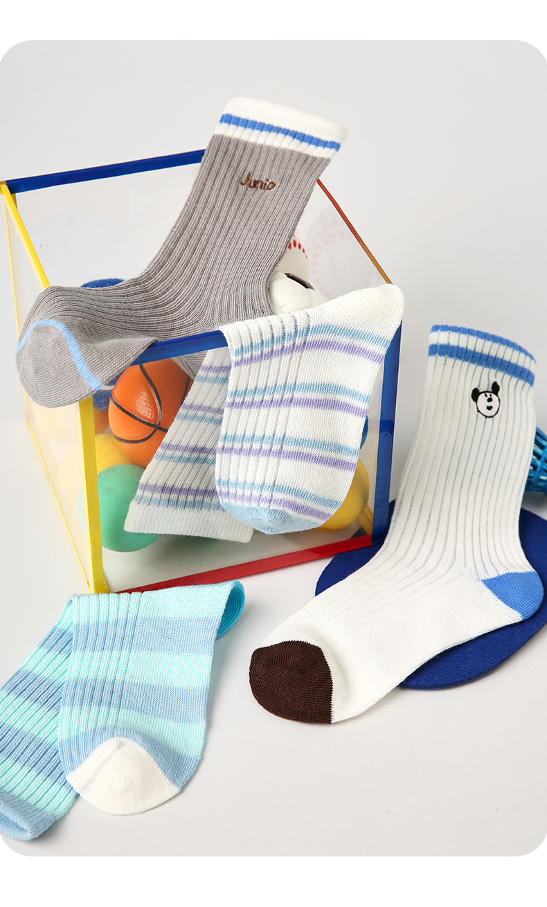 Wholesale children's socks for Spring/Summer 25: Mesh embroidered bear baby socks, cotton boneless breathable mid-calf socks for boys and girls