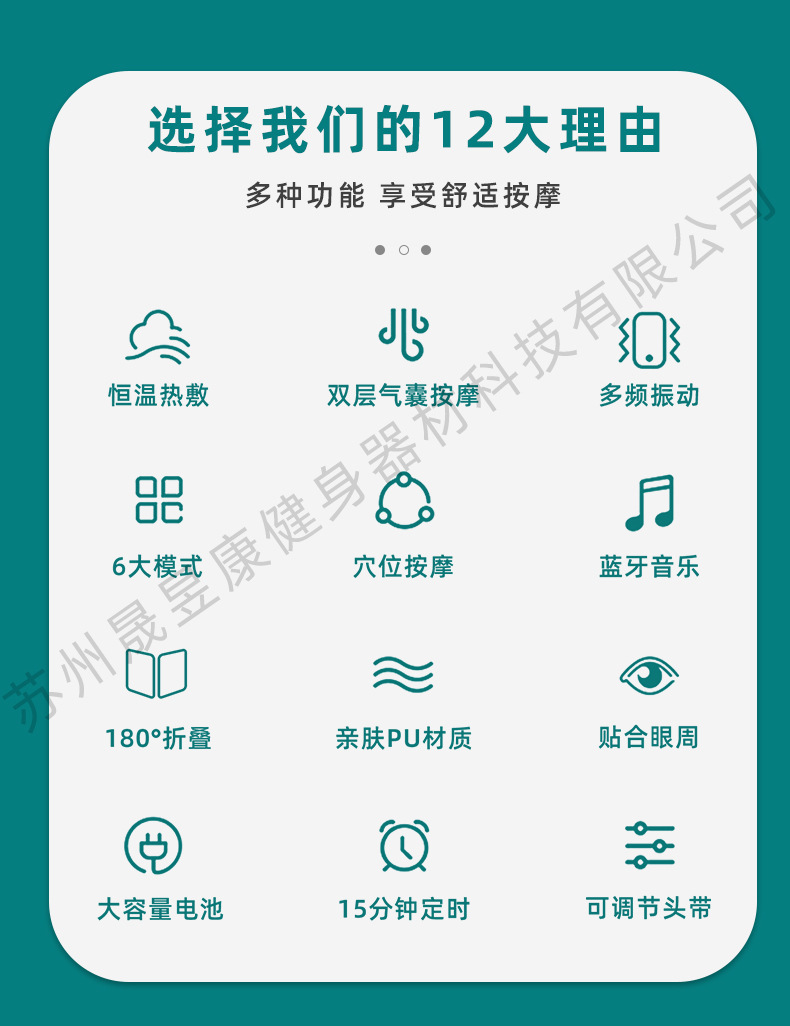 Suzhou Shengyu Kang Fitness Equipment Technology Co., LTD. (referred to as "Shengyu Kang") is located in Suzhou City, Jiangsu Province, which has a long history and beautiful scenery. It is a high-tech enterprise integrating R&D, production and sales. Main business: Eye massagers, head massagers, cervical massagers, shoulder massagers, personal beauty care products, household appliances and other series of products. The company attaches great importance to product quality and after-sales service. Actively develop new products and constantly improve product functions. Every product we produce has independent intellectual property rights - professional massage equipment manufacturer! All models of the company's products support OEM customization and drop shipping. Minimum order quantity: One piece. Larger orders enjoy better prices!