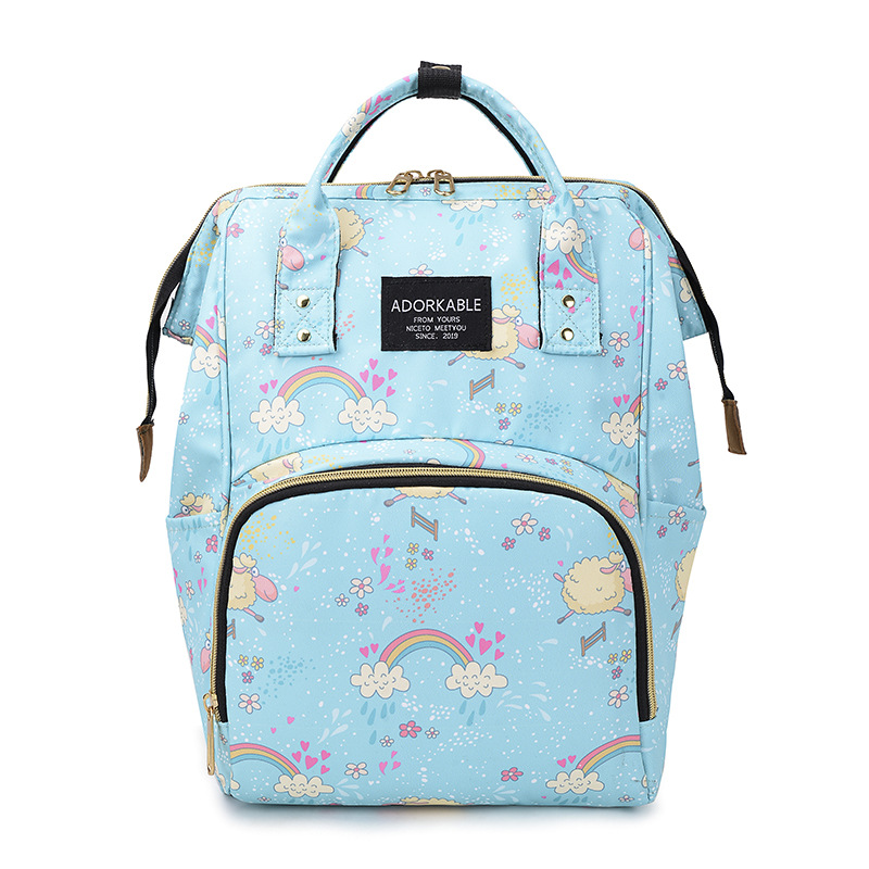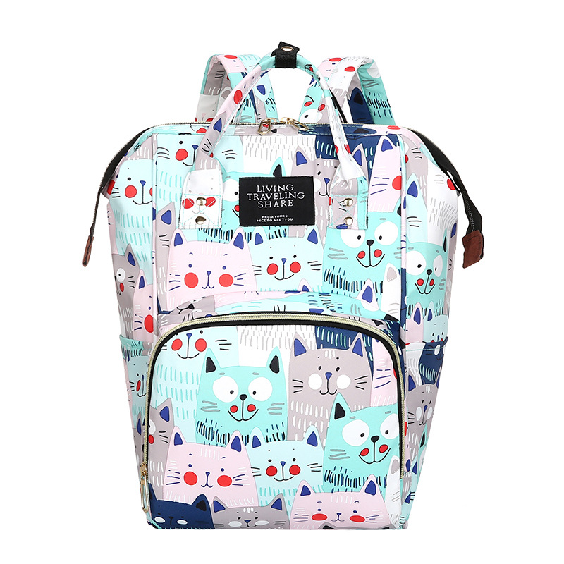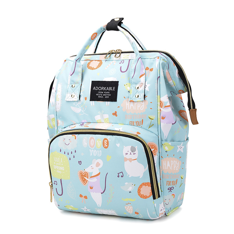 Wholesale custom printed cartoon mom bags, multi-functional women's backpacks, mom bags, large-capacity baby and mother bags