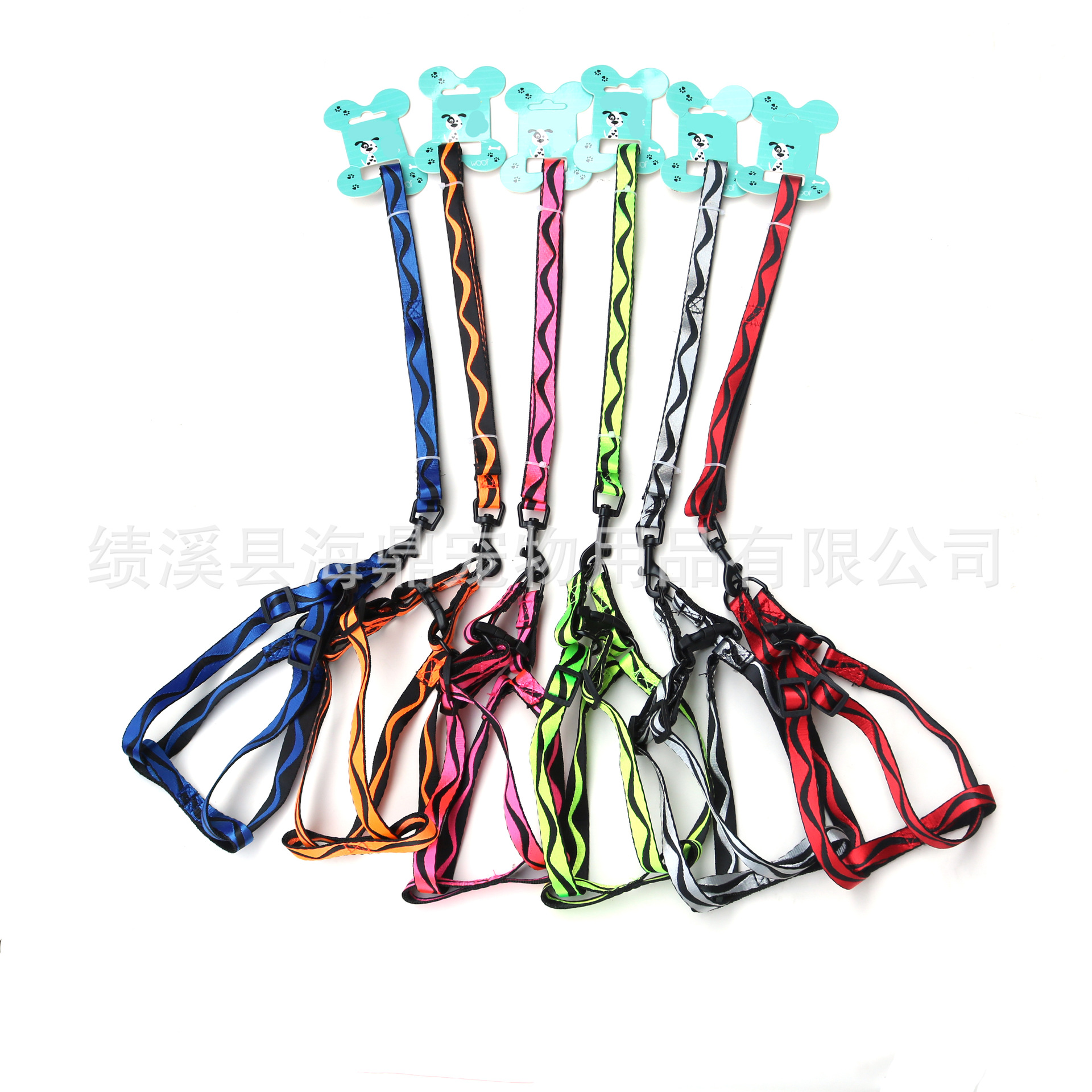 Wholesale dog leashes, single-line wavy nylon leash, chest and back straps, small and medium-sized pet leashes, dog chains