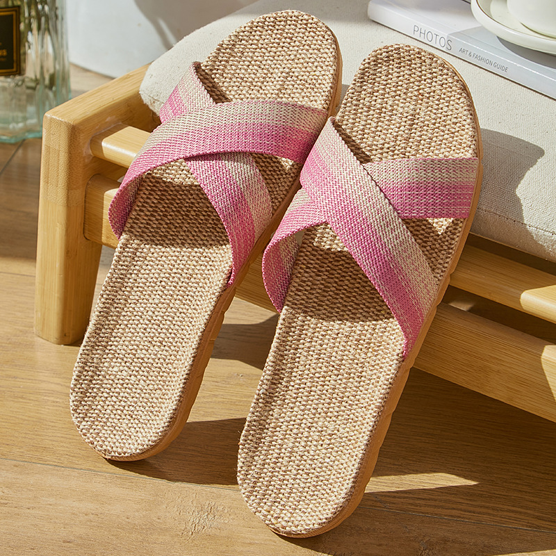 Wholesale four-season linen slippers for home use, anti-odor and anti-slip indoor cotton and linen cooling slippers for women to wear outside, silent cooling slippers for home use