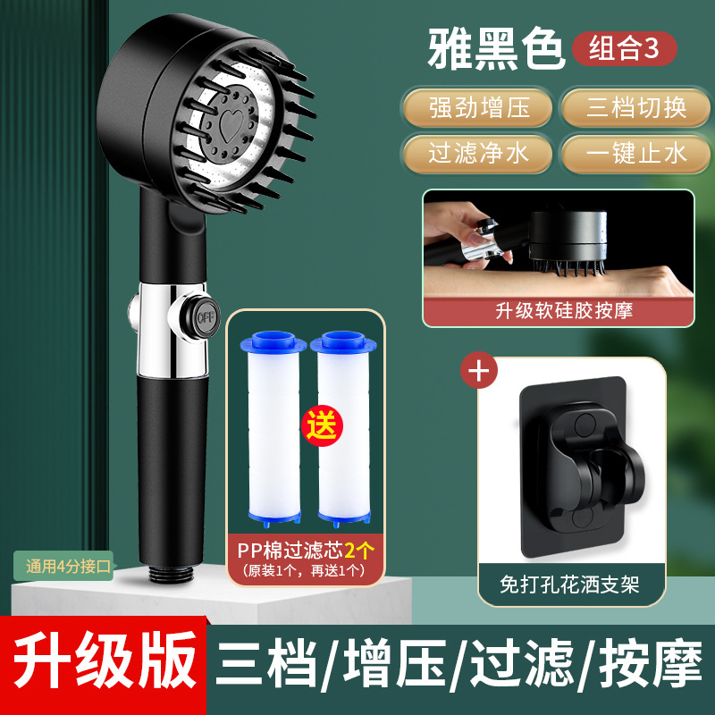 【 Style Black Filter Massage 】+ 1.5-meter hose + Stand + Equipped with 2 filter cores