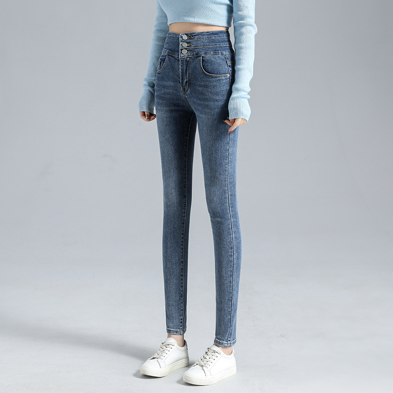 Wholesale high-waisted jeans for women, the latest 2021 large-sized, slimming, tight-fitting pencil skinny pants