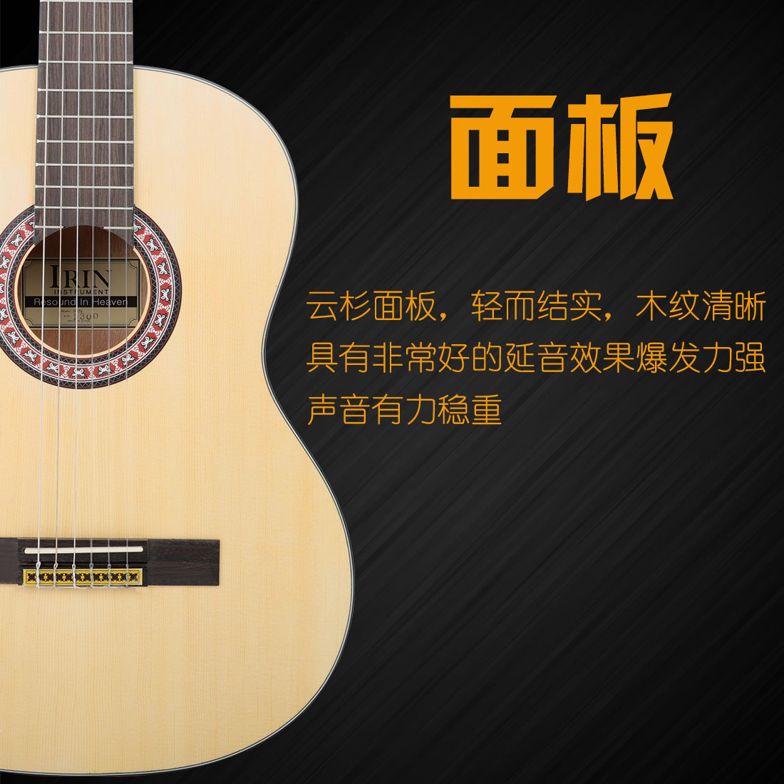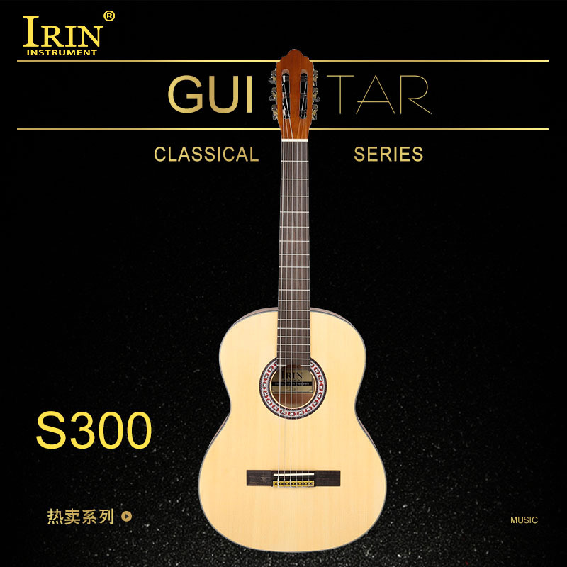 Wholesale IRINS300 rounded corner classical guitar, natural wood color spruce top guitar, beginner's acoustic guitar, jita wood