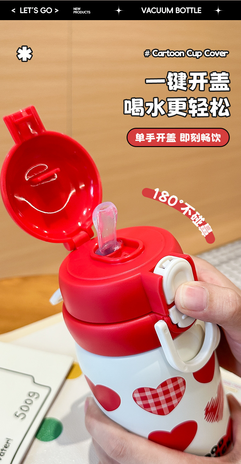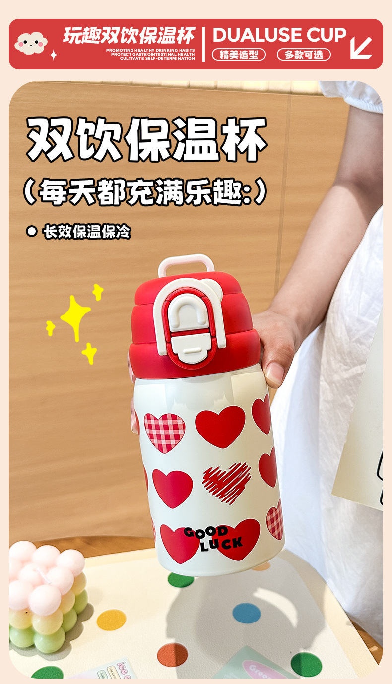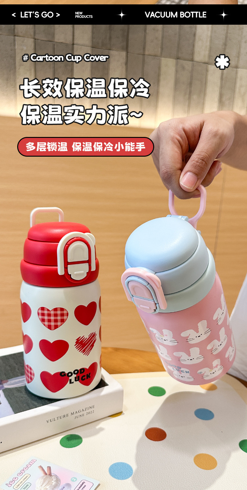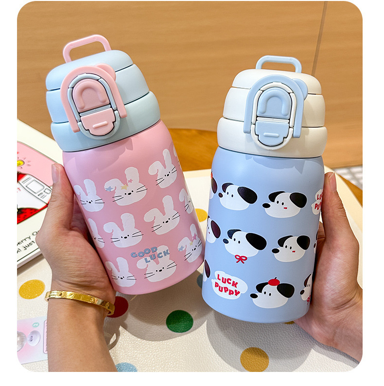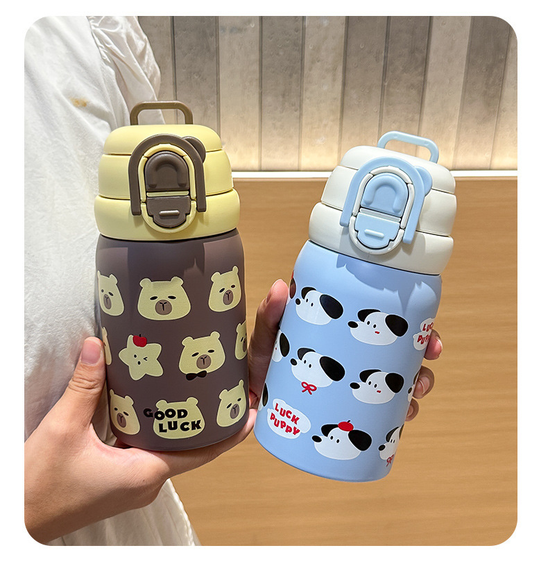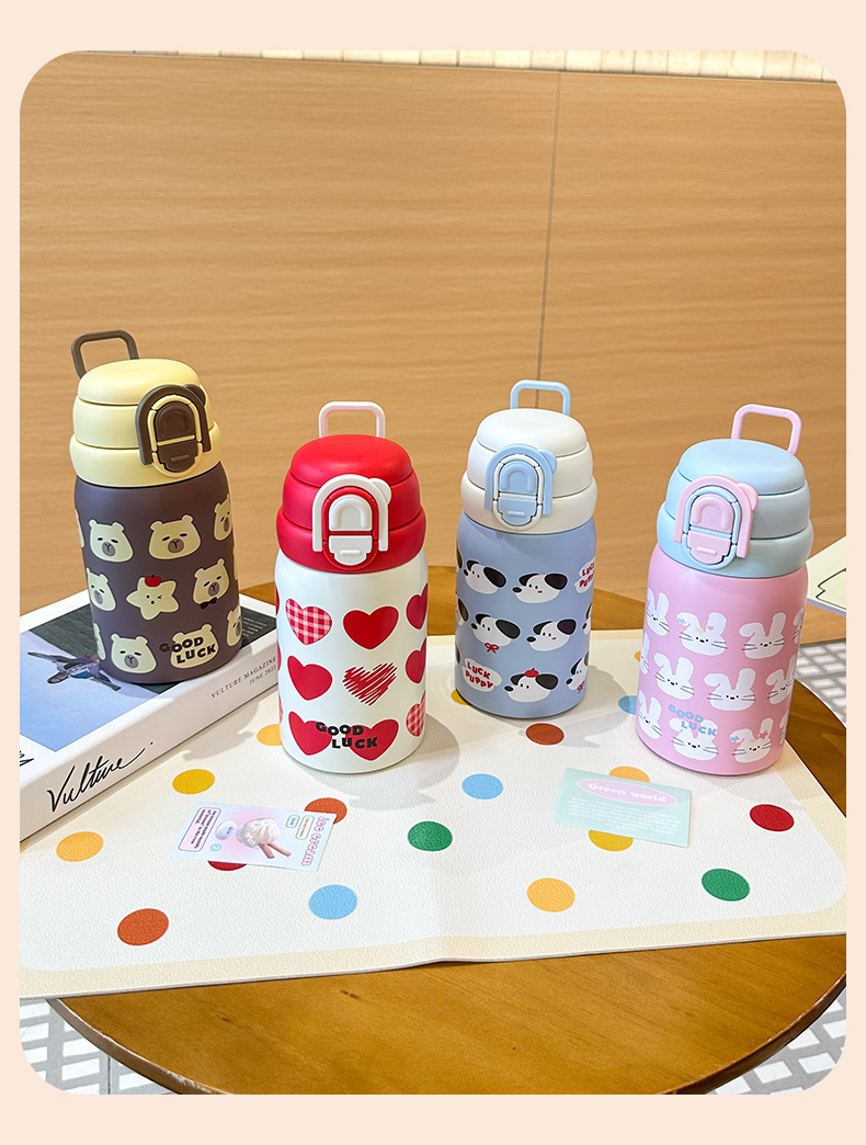 Wholesale large-capacity children's cute water cups, food-grade portable handle cups, student direct drinking thermos cups, and spouts