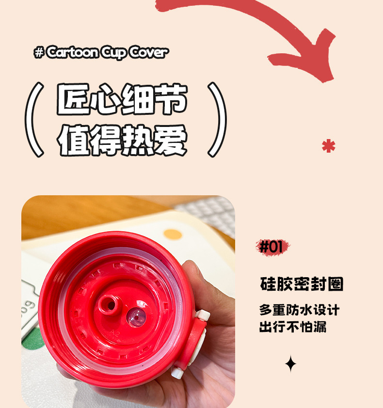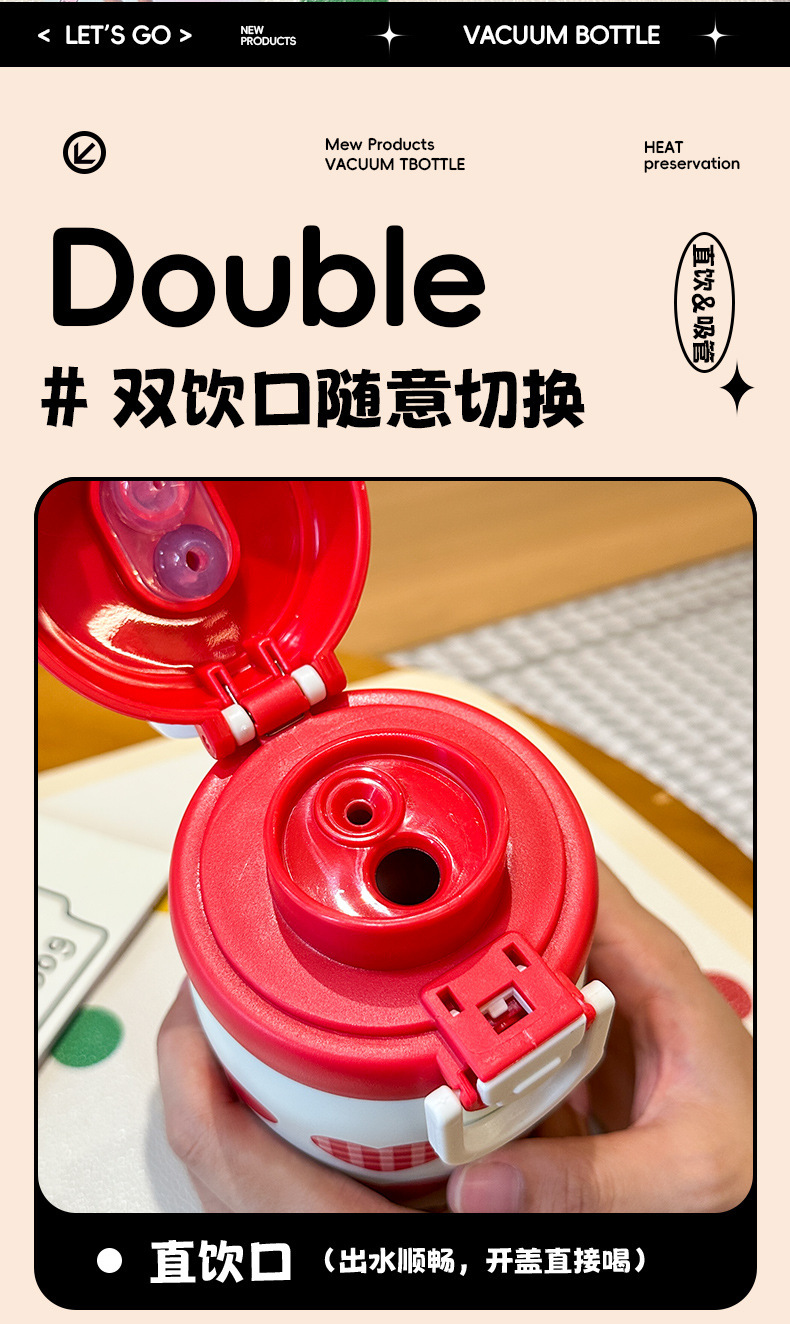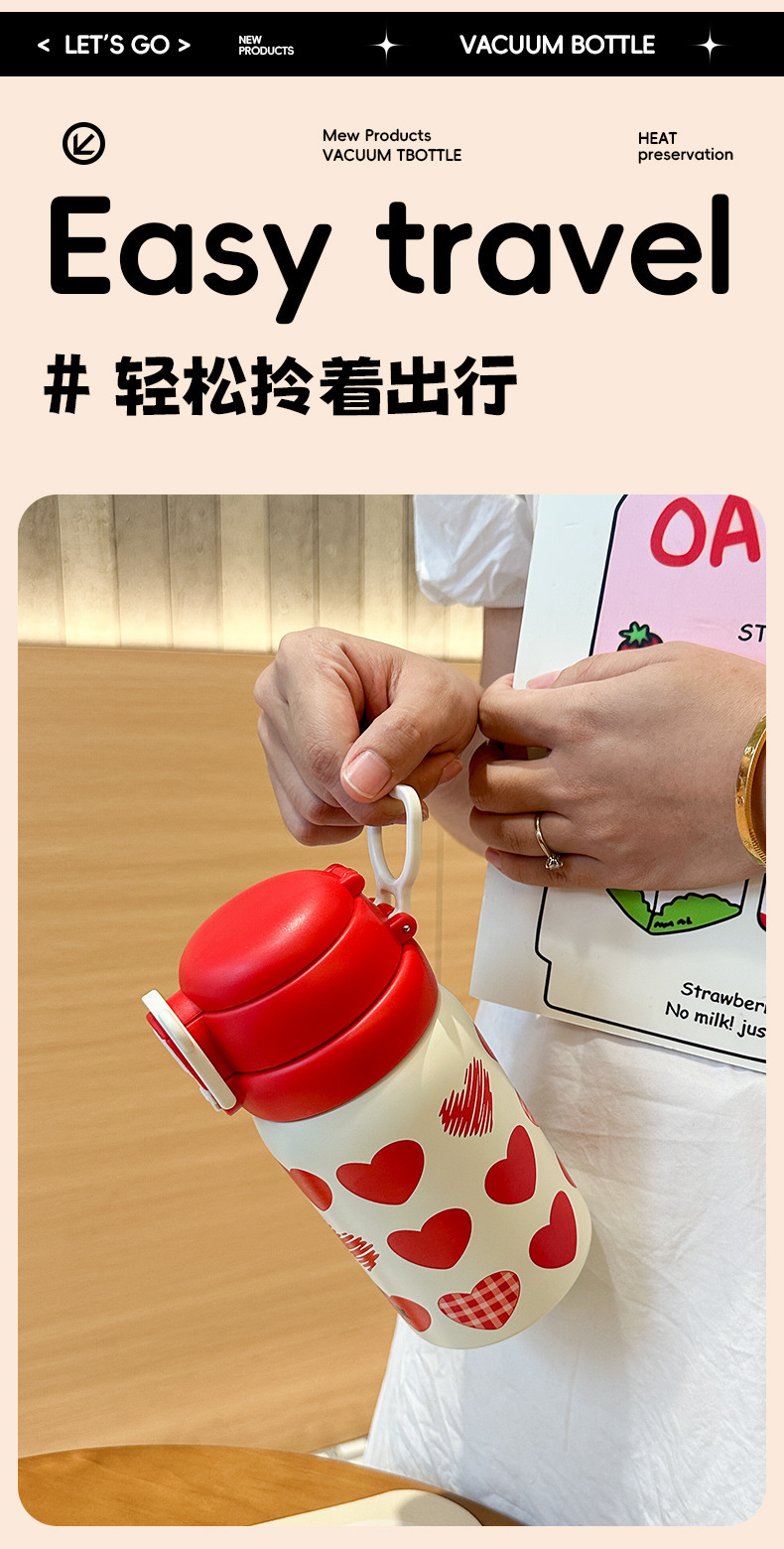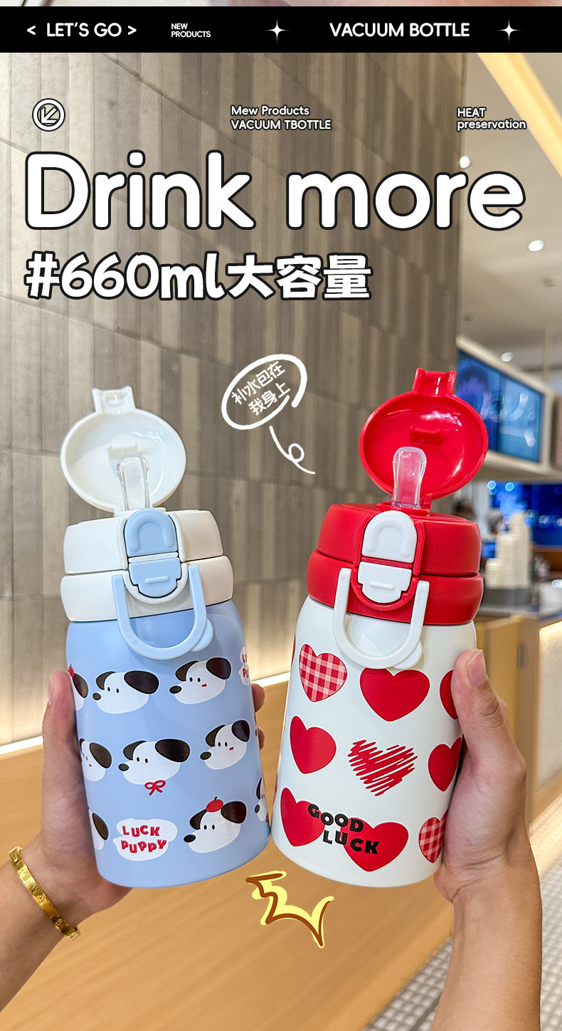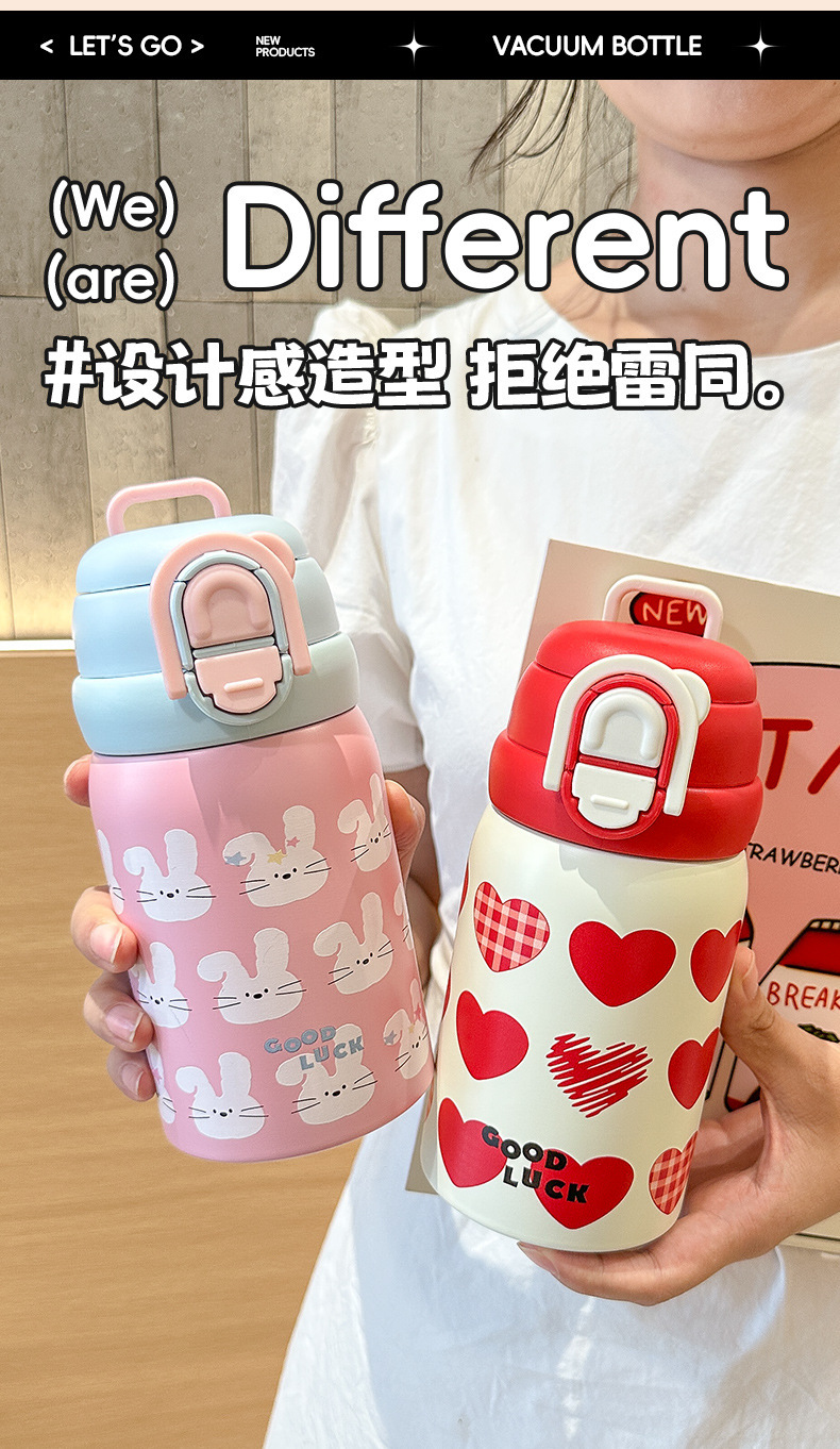 Wholesale large-capacity children's cute water cups, food-grade portable handle cups, student direct drinking thermos cups, and spouts