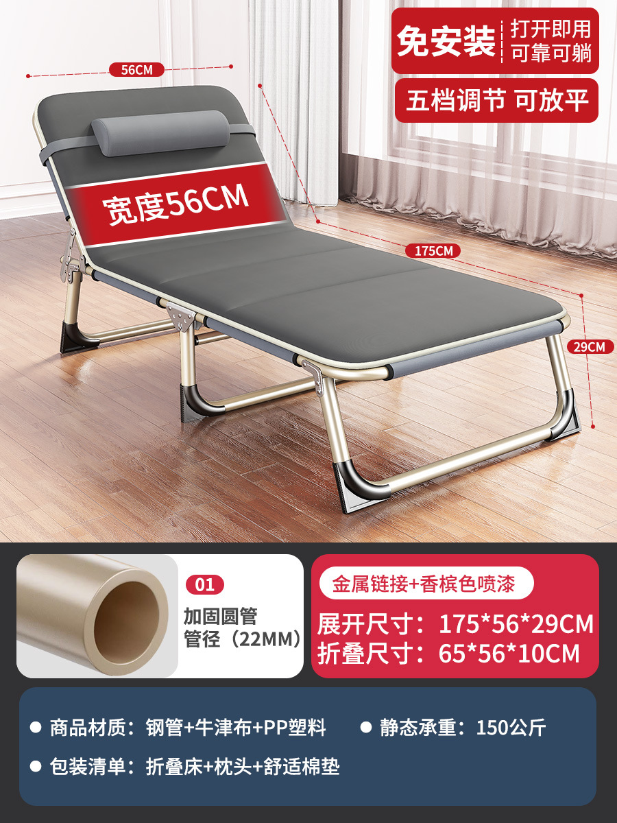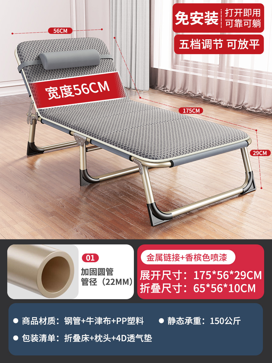 (New Product) Integrated mattress: approximately 66*182*30cm, 56 round tube grey three-legged model: approximately 175*56*30cm, 62 round tube three-legged model: approximately 62*180*30cm, 68 wide flat square tube four-legged model: approximately 190*68*30cm, 75 wide flat square tube four-legged model: approximately 190*75*30cm. The regular bed surface is made of Oxford fabric. The four-legged model has an additional load-bearing support foot at the head, making a total of four support feet. The heads of the three legs have no supporting feet, with a total of three supporting feet. The diameter of the round pipe is 22mm and the thickness is 0.7mm. The diameter of the square pipe is 25*16mm and the thickness is 0.7mm.