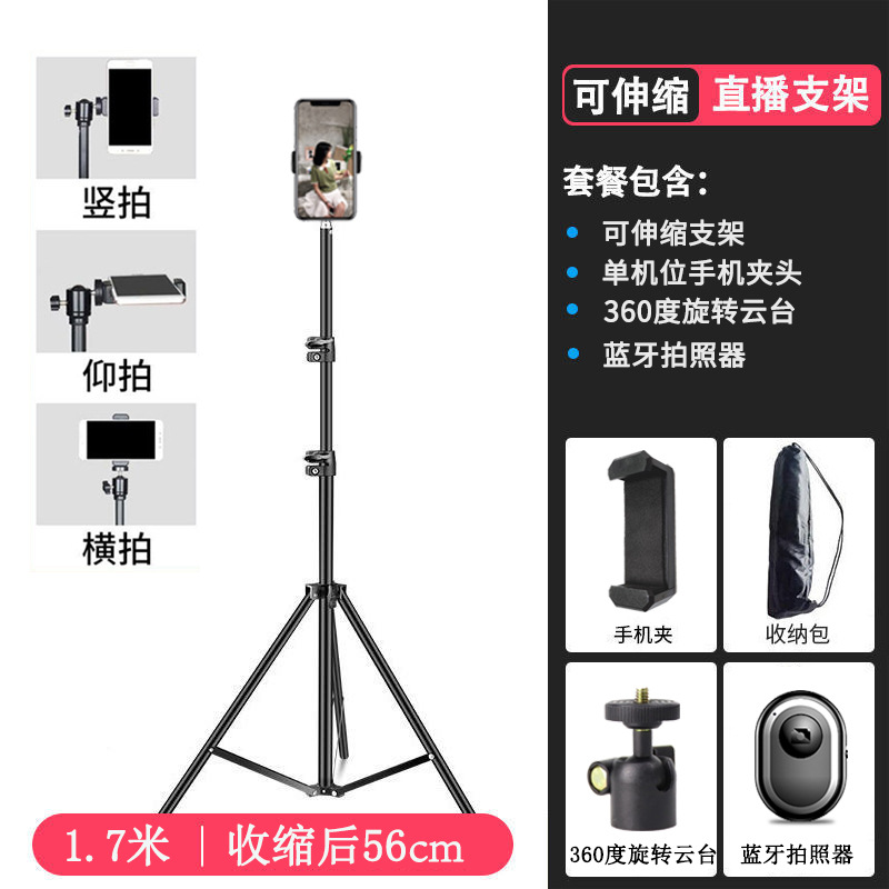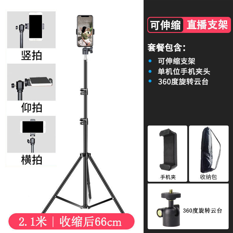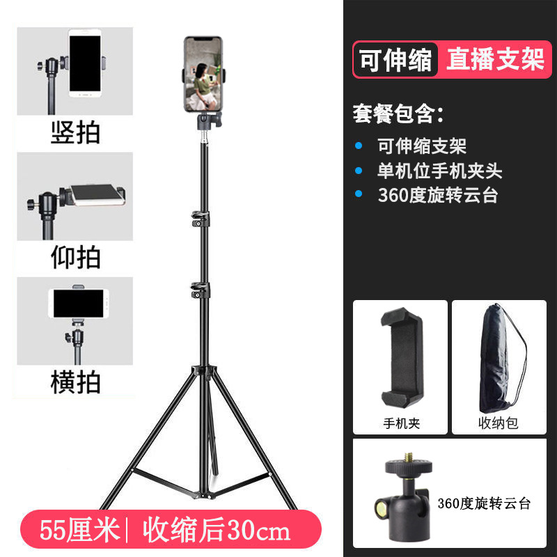 Wholesale mobile phone stand, thermometer, fill light, multi-functional camera tripod, floor-standing self-broadcasting telescopic support frame