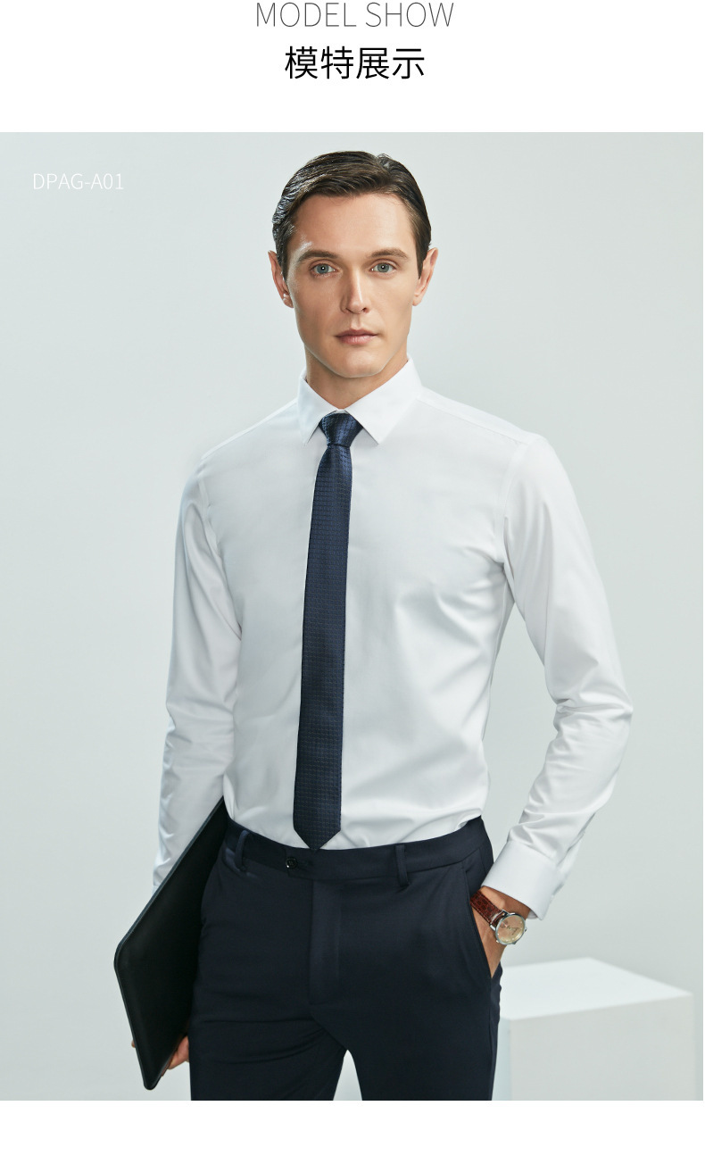 Wholesale of 100 pairs of double light blue fine striped no-iron shirts for men's long-sleeved spring and autumn daily business and commuting shirts