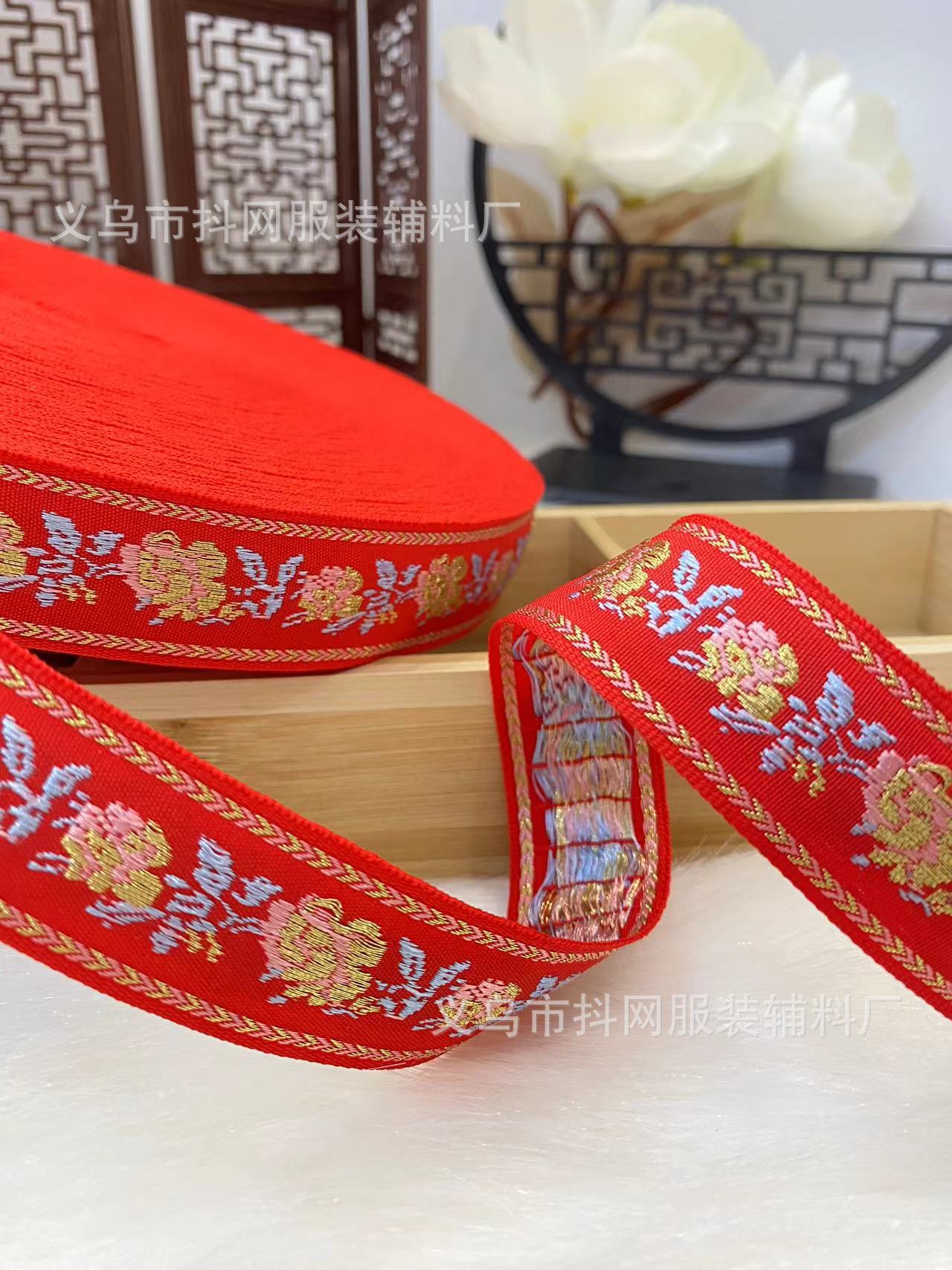 Wholesale of 2.3-3.2cm bright red New Year festive jacquard embroidery webbing ethnic style new Chinese-style wedding dress accessories