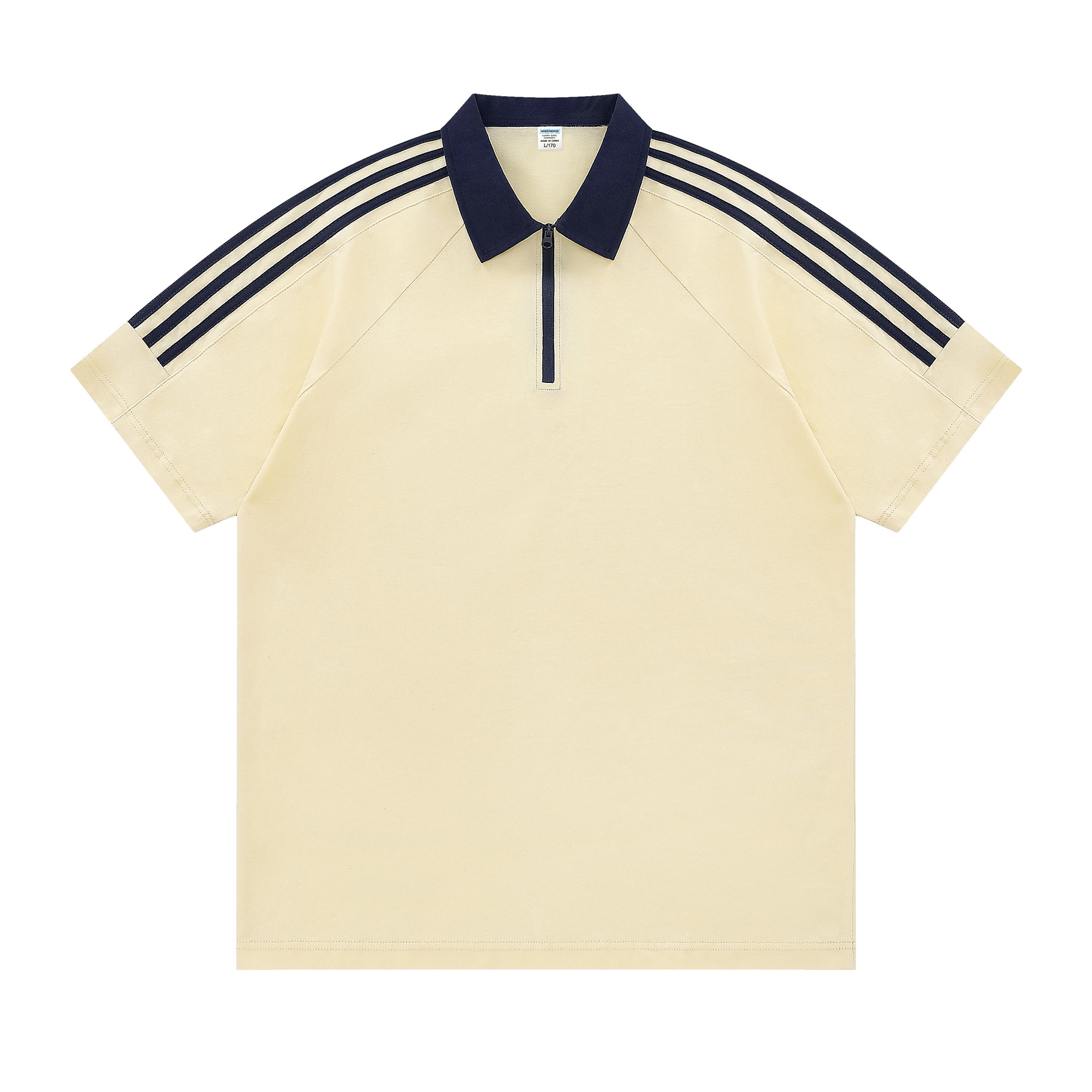 Wholesale of 200g trendy pure cotton summer short-sleeved men's college-style top, three-bar zipper shirt, men's polo shirt