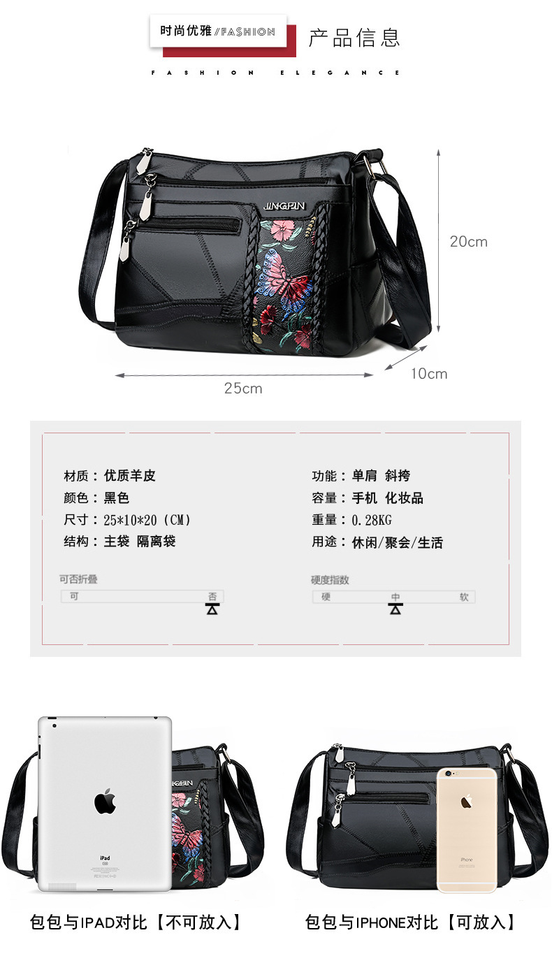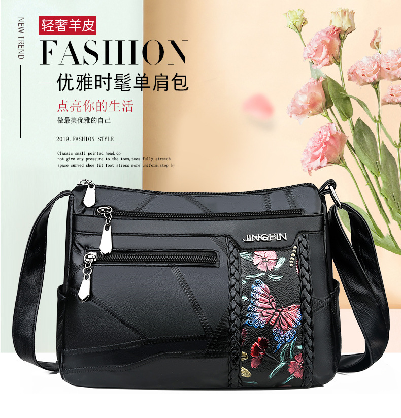 2019 Factory Direct sale of sheepskin women's crossbody bag, large capacity, versatile, casual single-shoulder bag, trendy bag for middle-aged women