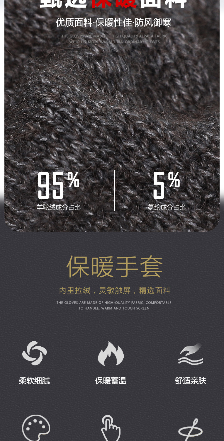 Wholesale of 2023 new men's warm gloves, winter touch screen fleece gloves, cold-proof and warm woolen knitted gloves