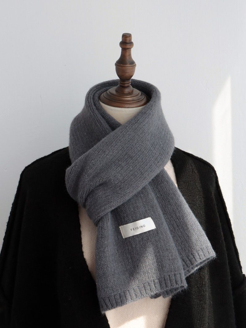 Wholesale of 2024 new solid-color scarves for women's autumn and winter warmth, Korean-style knitted scarves for men, and faux cashmere and woolen scarves