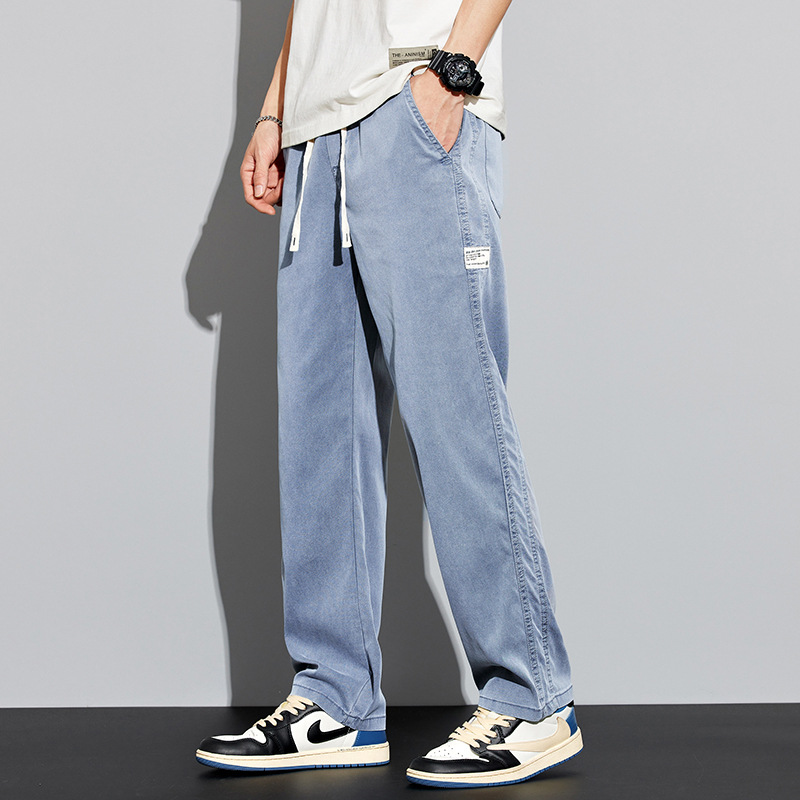 Wholesale of 2024 summer new wide-leg ice silk casual pants for men, simple and loose straight-leg Tencel sportswear pants for men