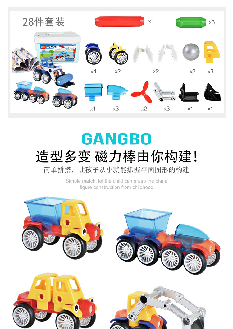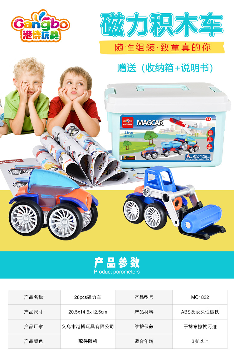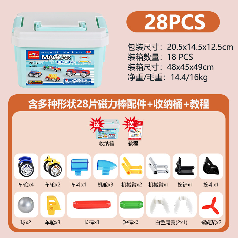 Wholesale of 28pcs children's magnetic cart toy sets for boys and girls, educational magnetic building blocks gifts