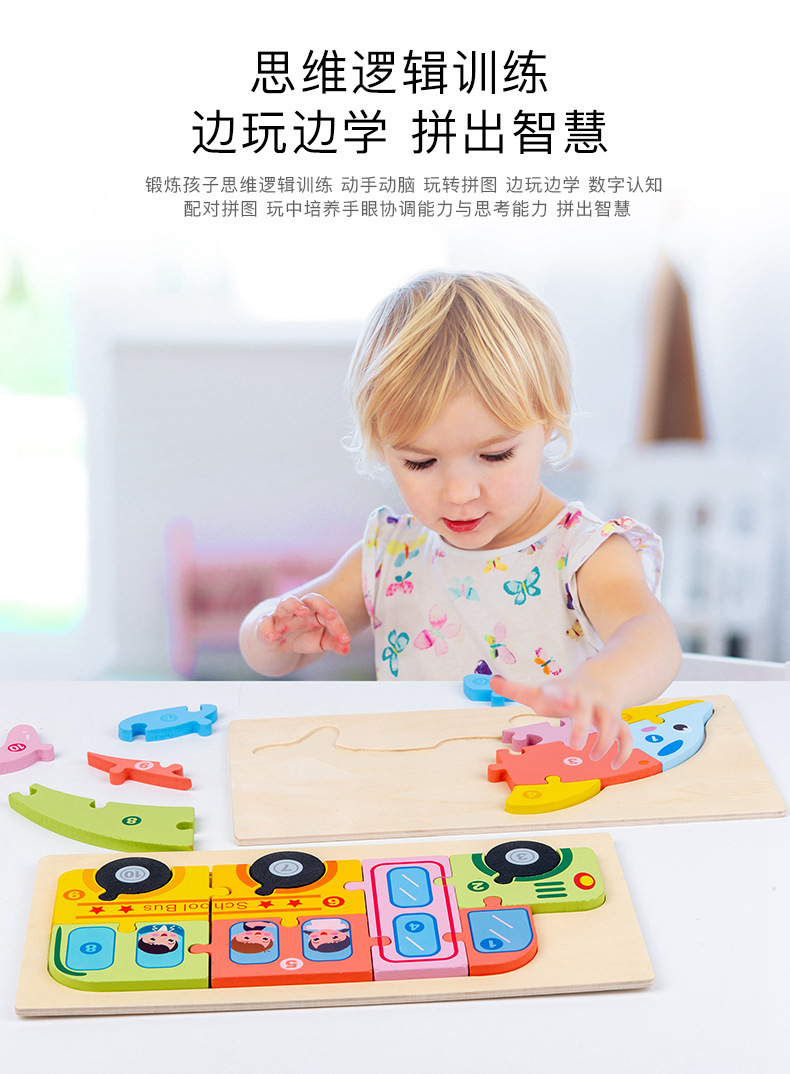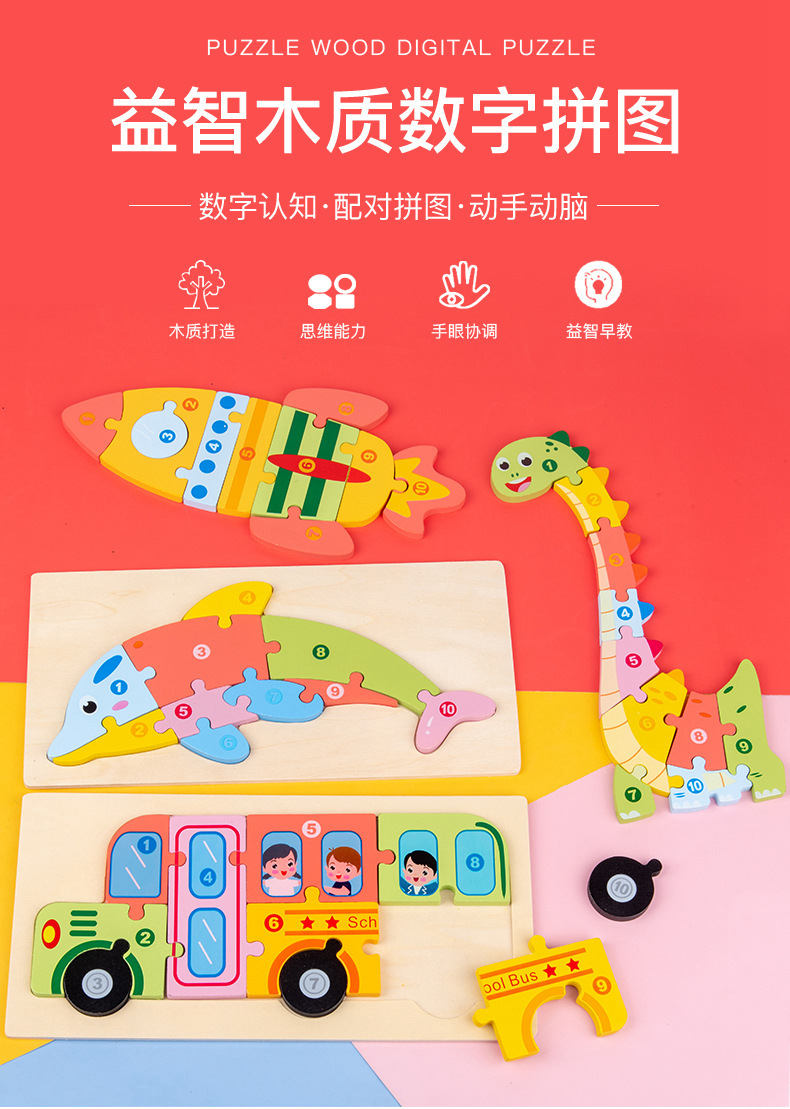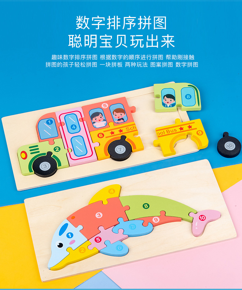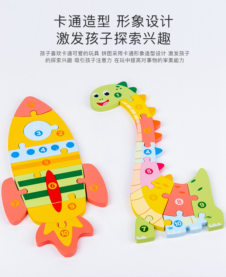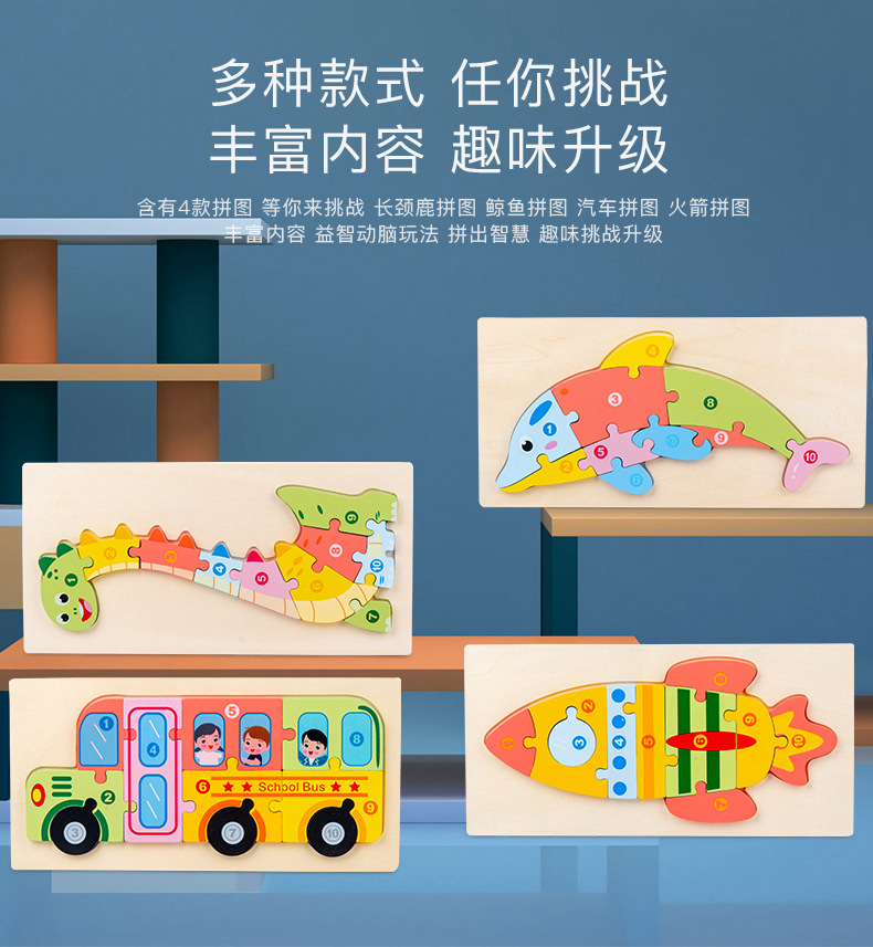 Wholesale of 3D stereoscopic jigsaw puzzles, dinosaur boards, early education animals, large vehicles, cognitive wooden children's toys