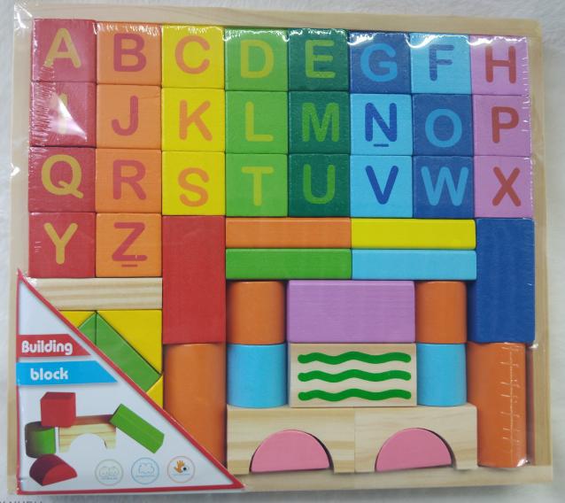 Wholesale of 42-piece large letter building blocks, children's educational toys, wooden geometric shapes stacked