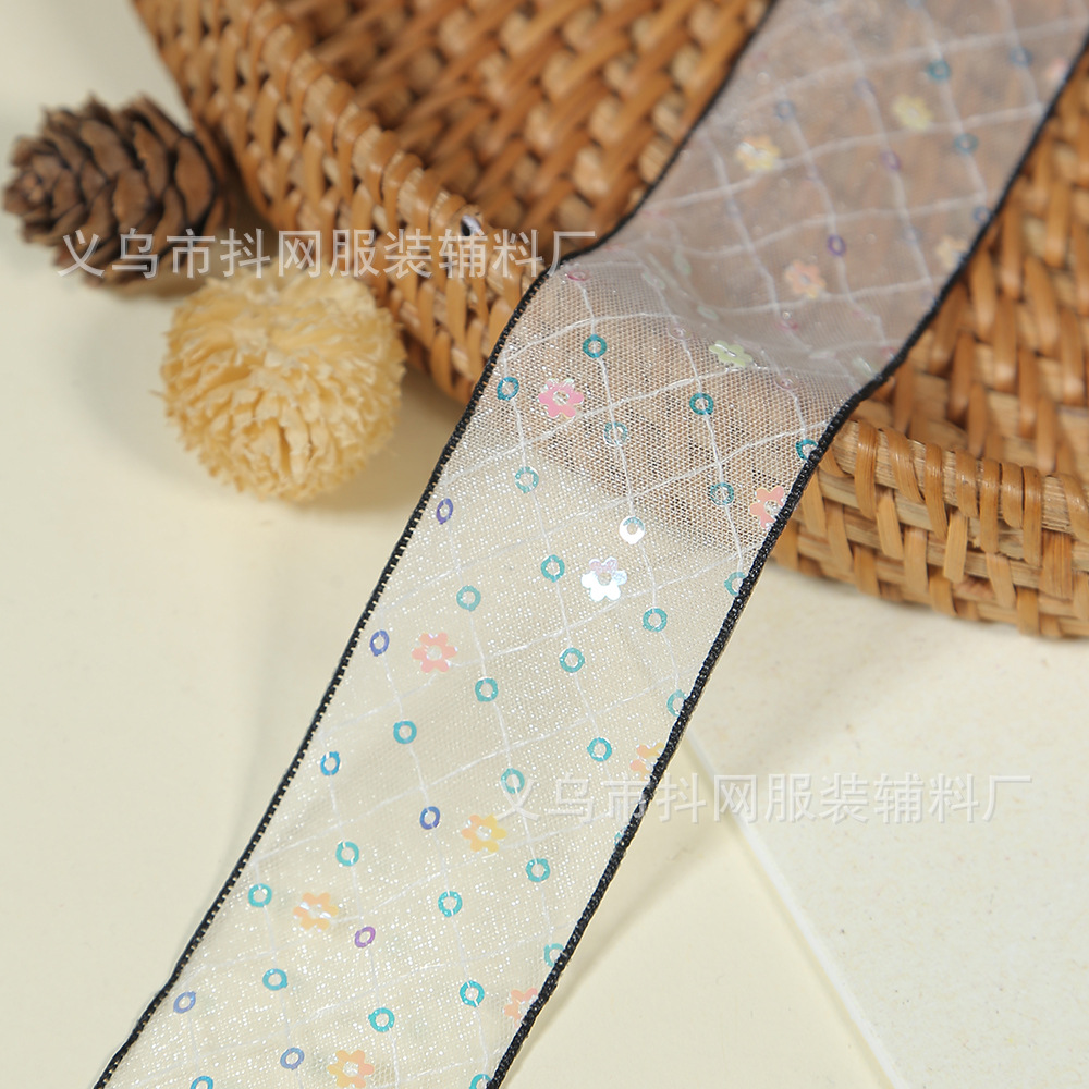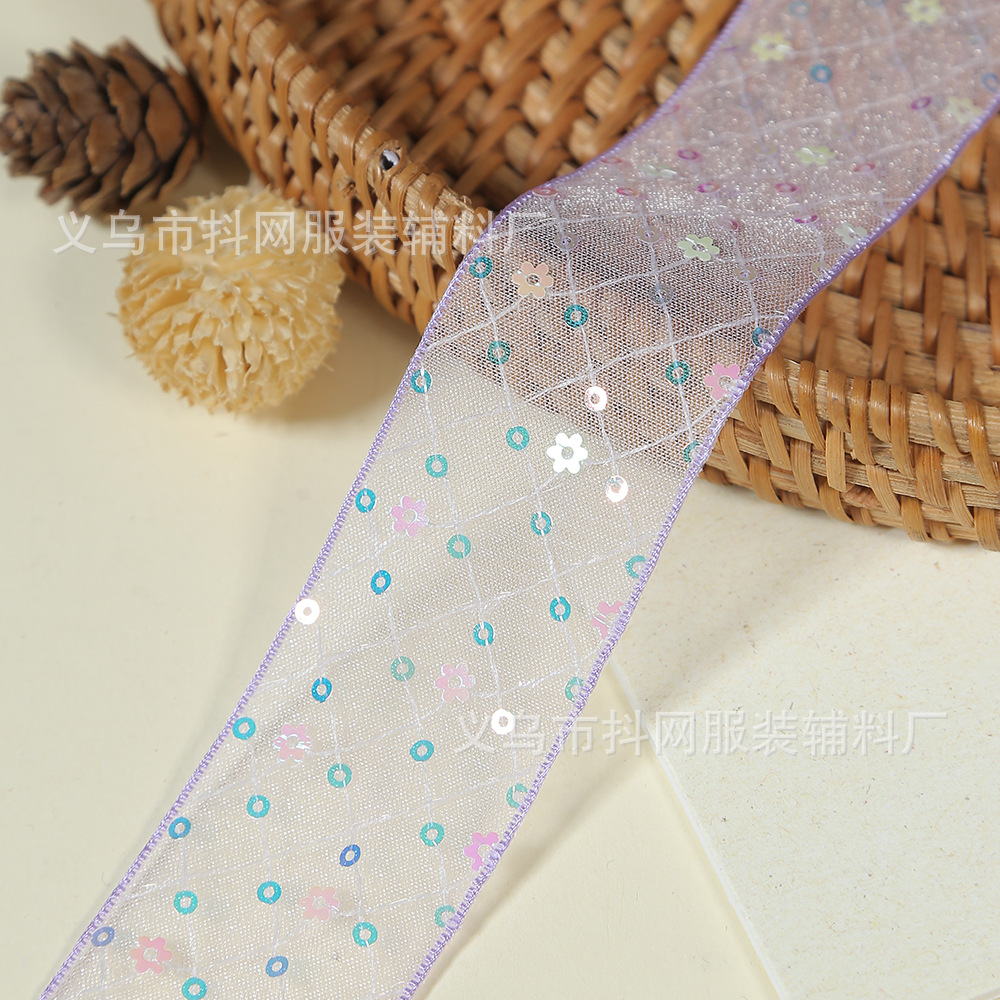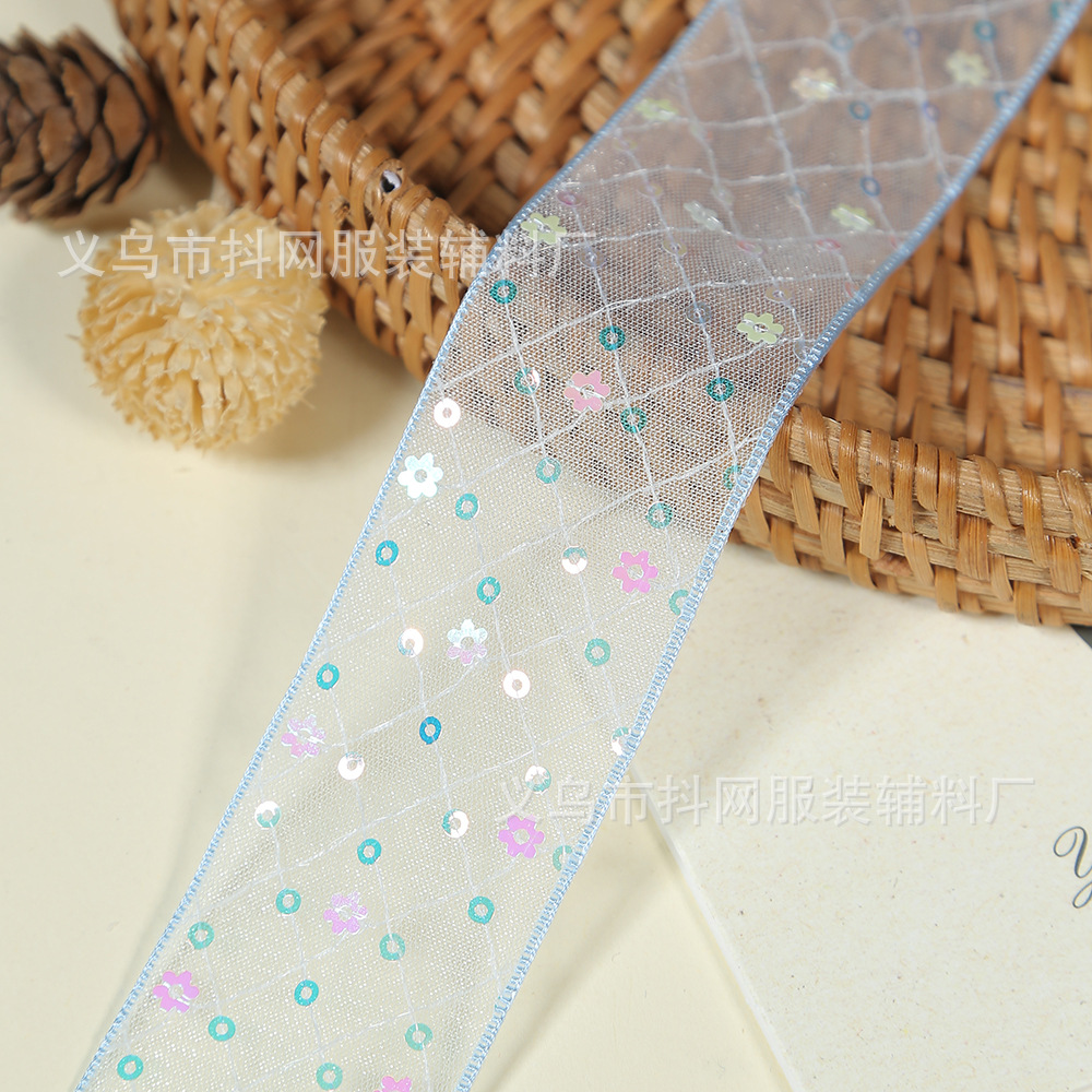 Wholesale of 4cm new grid-printed ribbon sequin children's hair accessory accessories, bow and flower packaging materials
