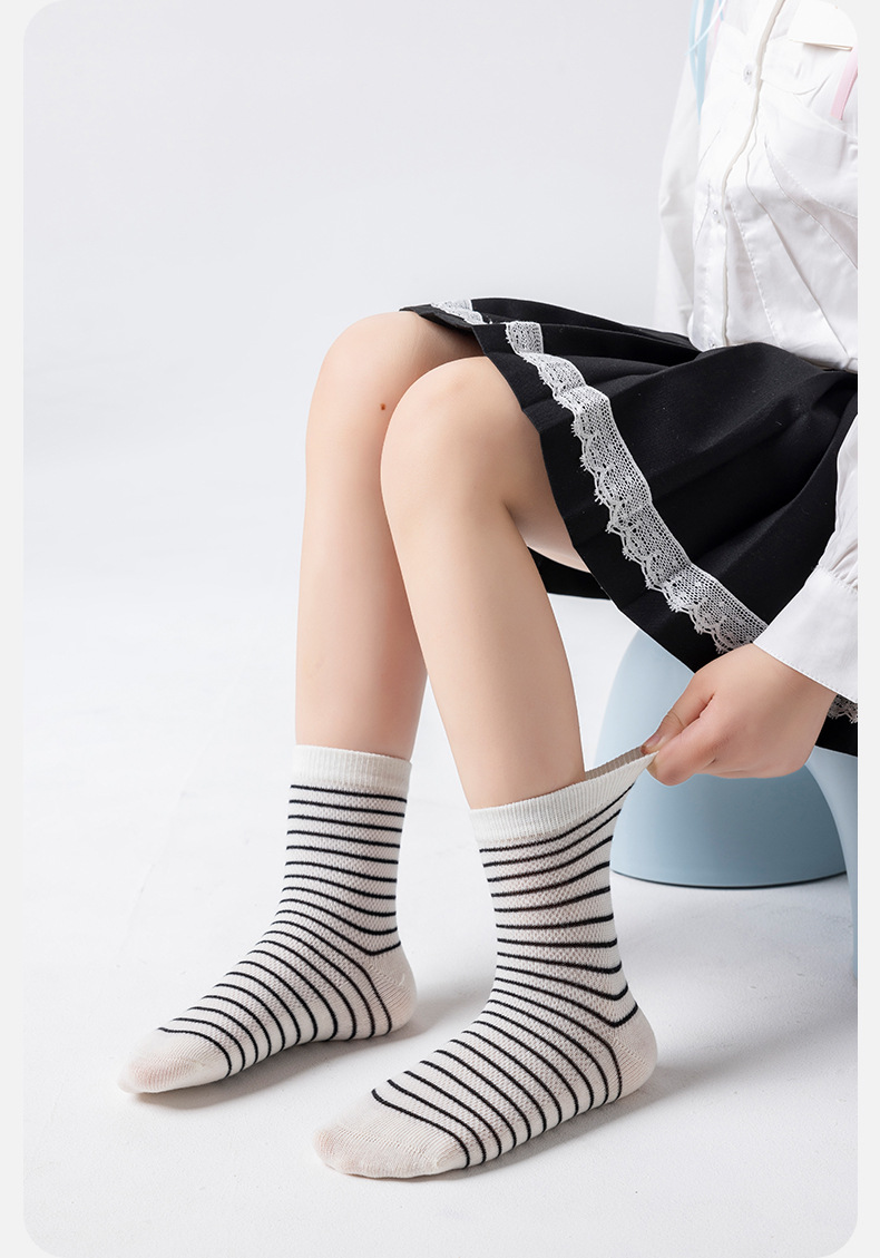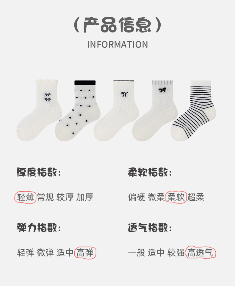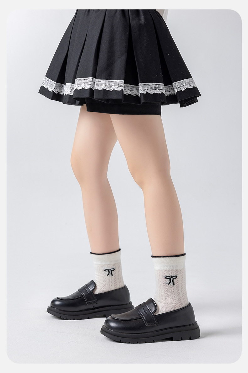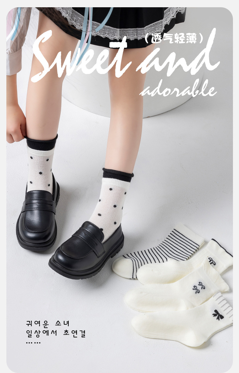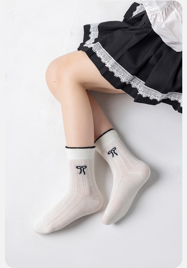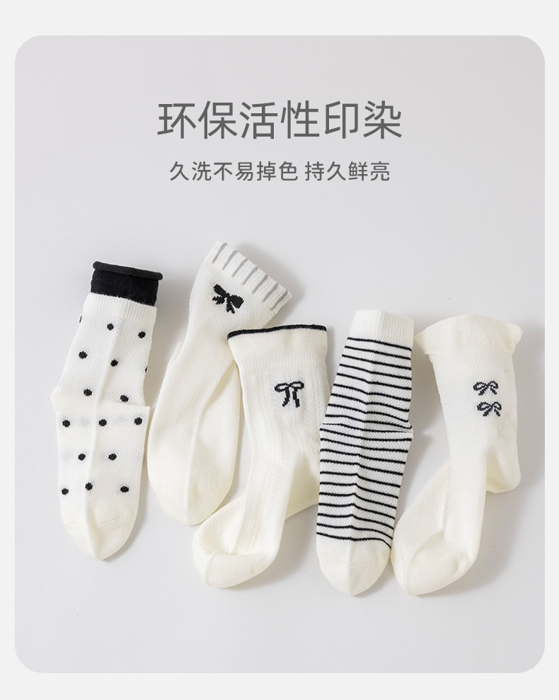 Wholesale of 5 pairs of new white girls' socks for summer and autumn, featuring thin and simple bow embroidery mid-calf socks