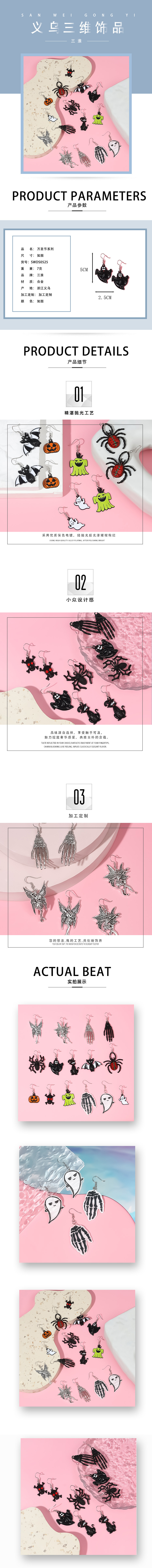 Wholesale of Amazon's new Halloween series ghost Spider Bat earrings, exaggerated and terrifying ghost earrings set