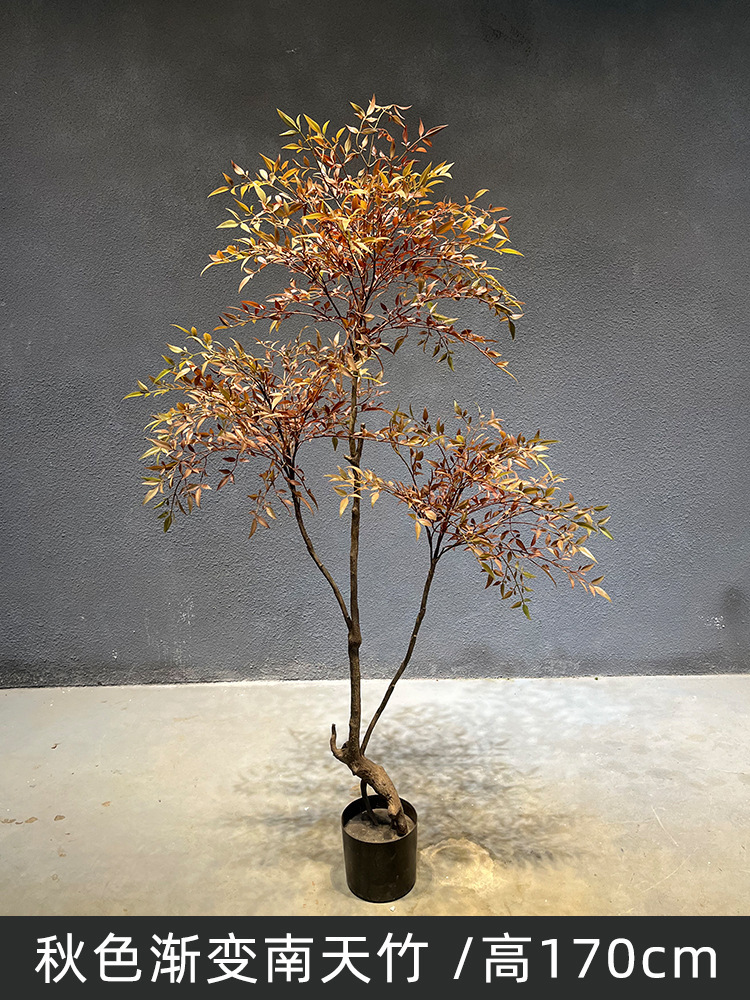 Wholesale of artificial Nandina domestica plants, artificial green plant decoration, artificial trees, living room floor-standing potted plants, bionic green plant ornaments