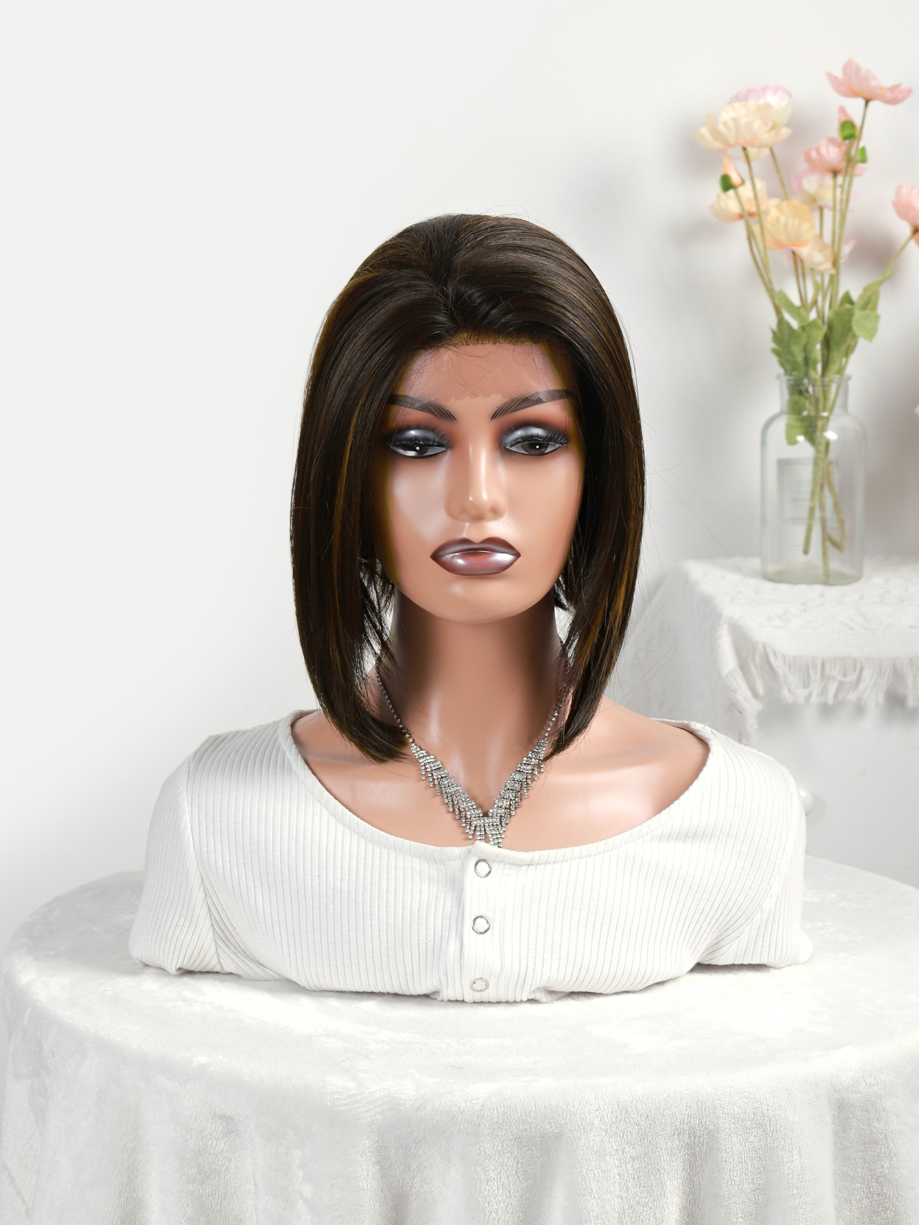 Wholesale of black and brown short straight Bob wigs and synthetic fiber hair covers for European and American fashion ladies in foreign trade newlook