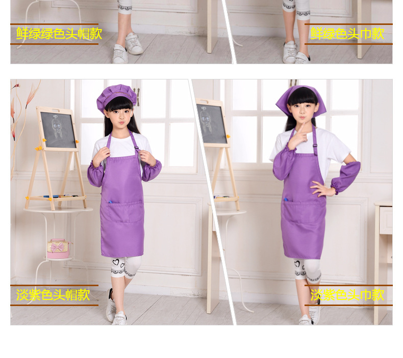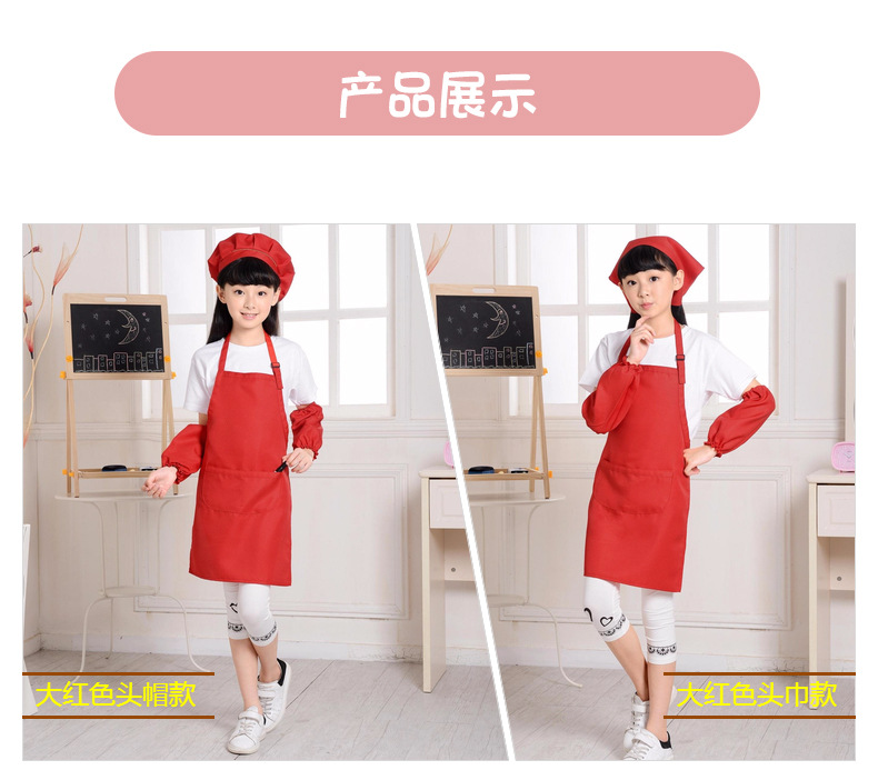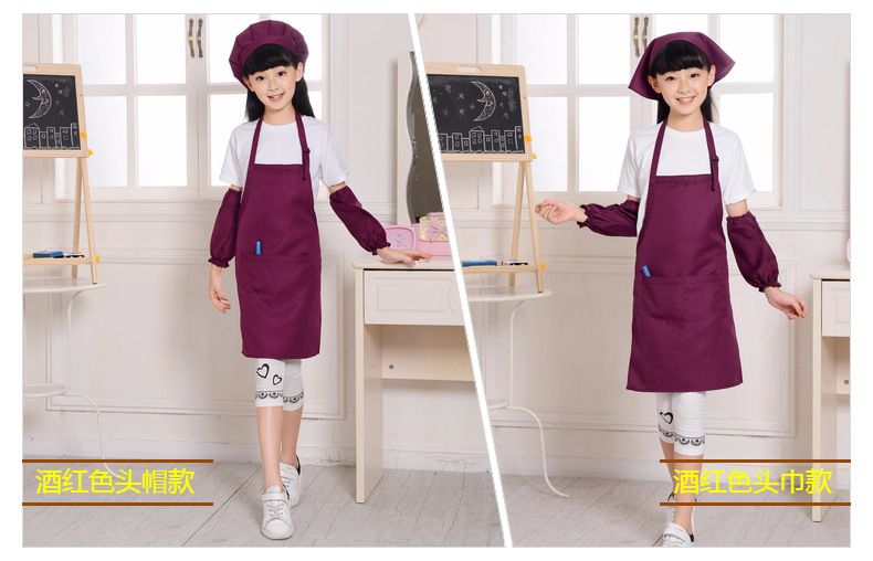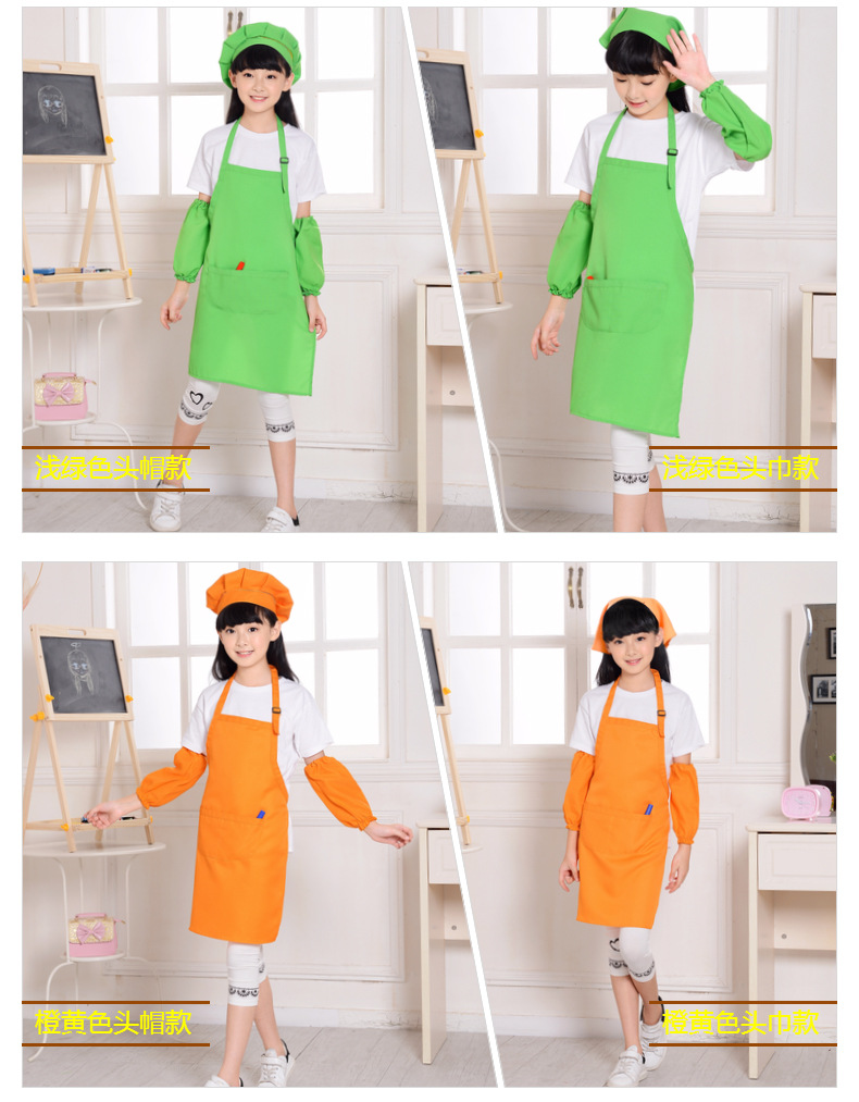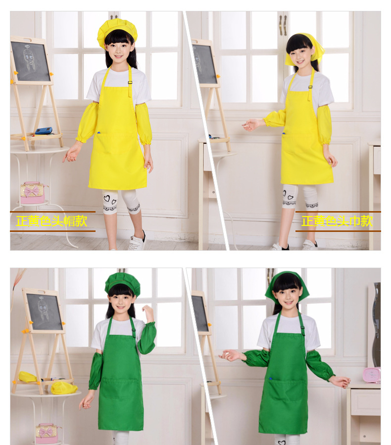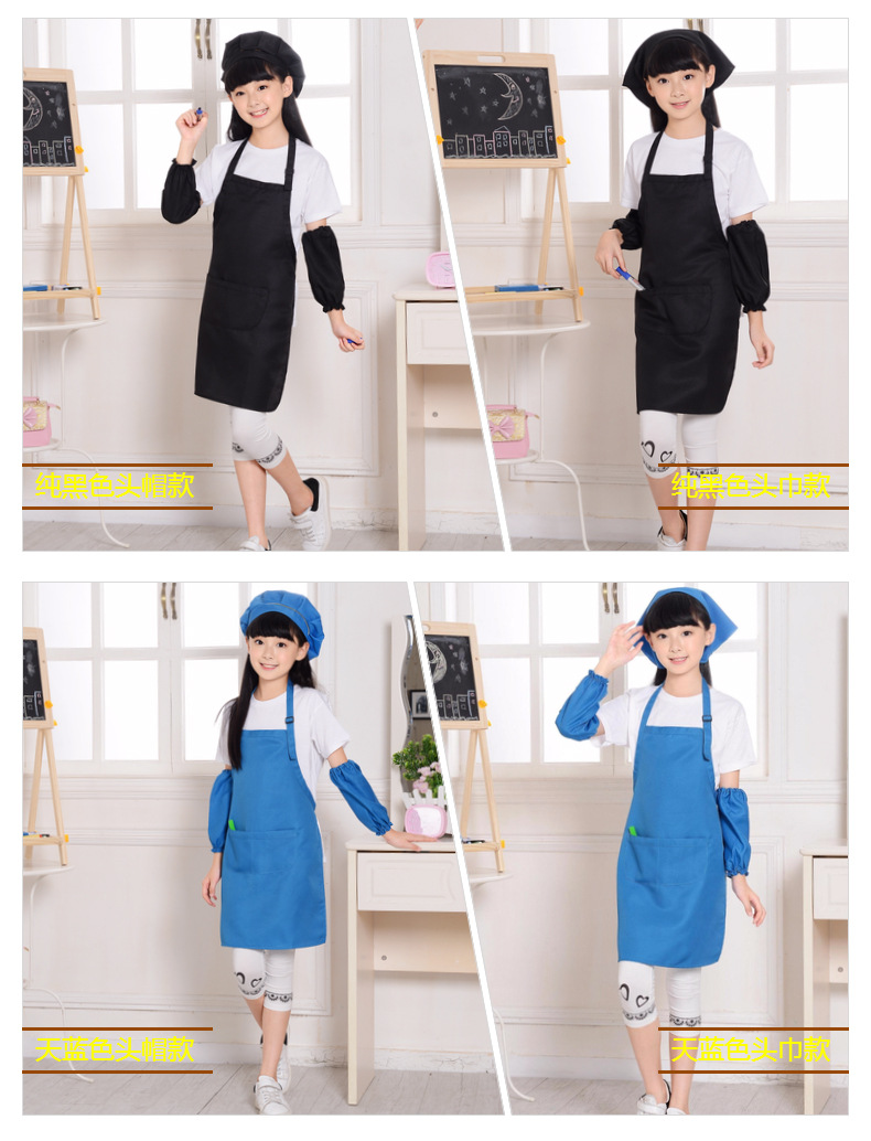 Wholesale of children's advertising apron sleeves, kindergarten drawing coveralls, oil-proof printed logo, chef's uniform and hat sets