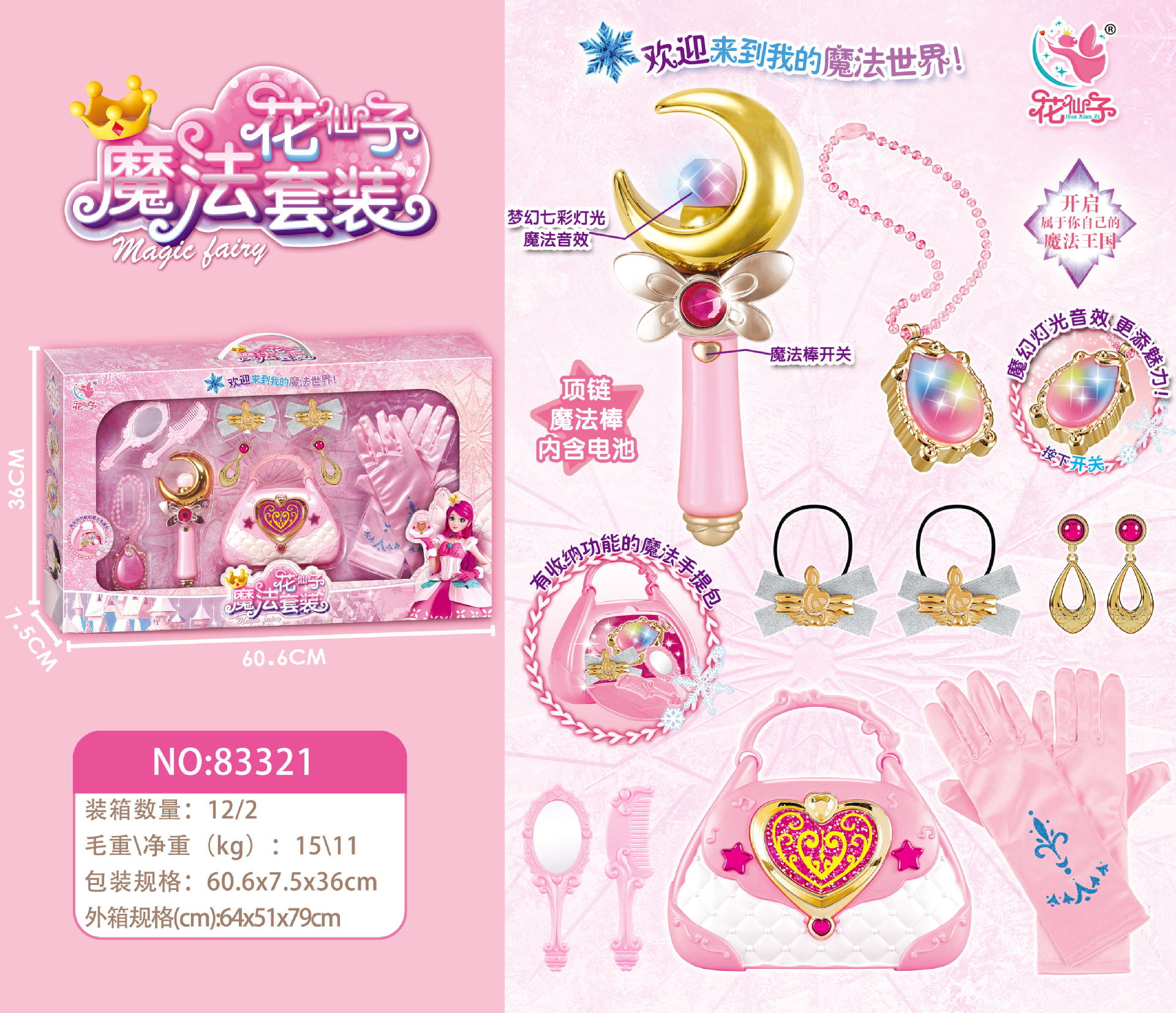 Wholesale of children's dreamy light rotating fairy wands, magic wands, Barala magic wands toys, girls, princesses, gifts