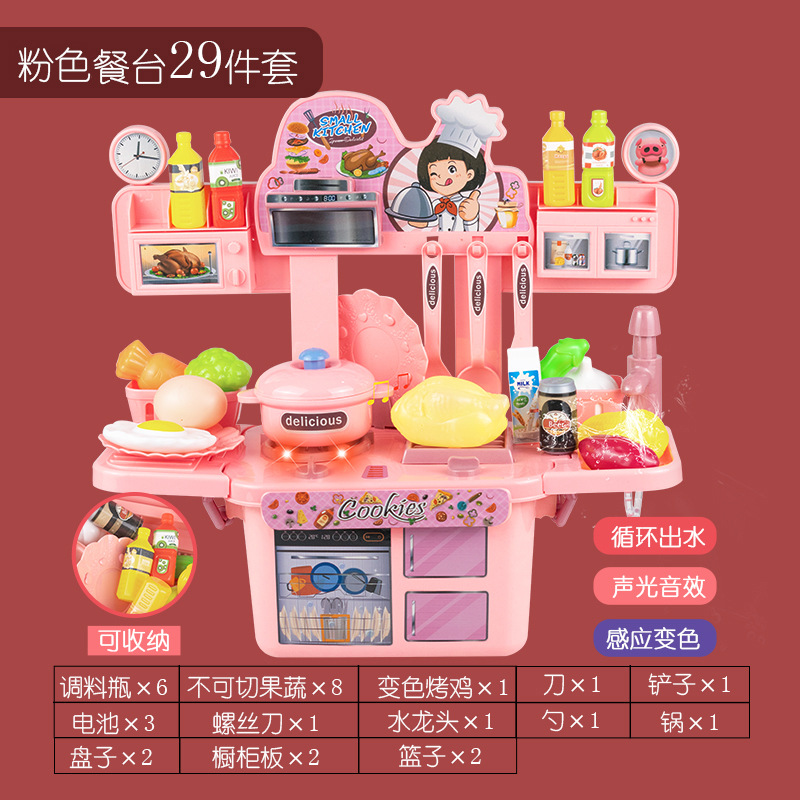 Cherry Blossom Pink Dining Table 30-piece Set (Spray available + Sound and light Effects + Water Release Available + Color-changing chicken)