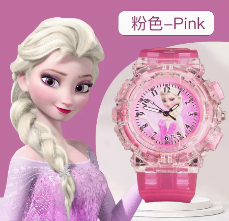 Wholesale of children's silicone 2023 quartz watches, Elsa Princess girls' plastic electronic cartoon luminous watches