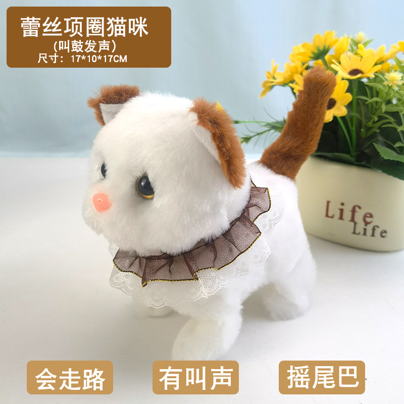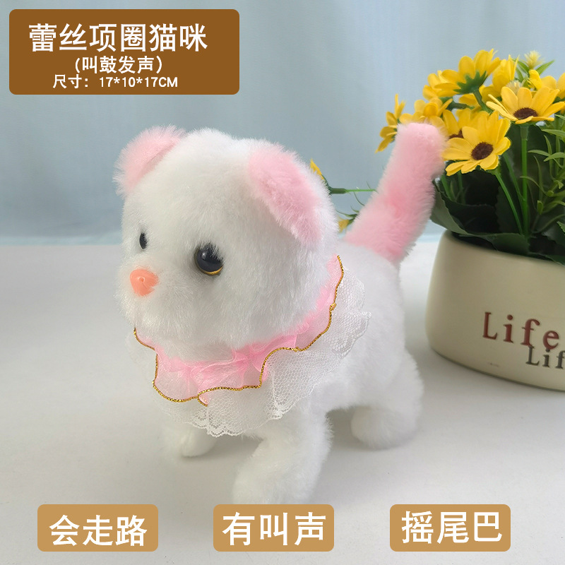 The collar lace kitten (pink) makes a sound while beating the drum