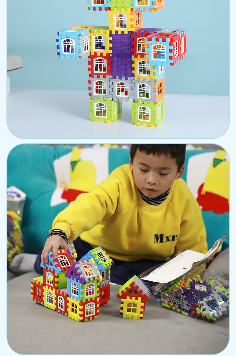 Wholesale of children's window, house building blocks, large square plastic blocks, castle assembly, and educational toys for kindergartens