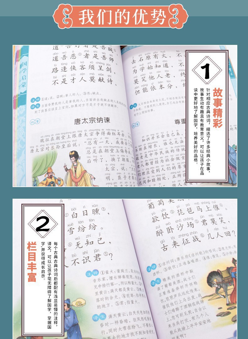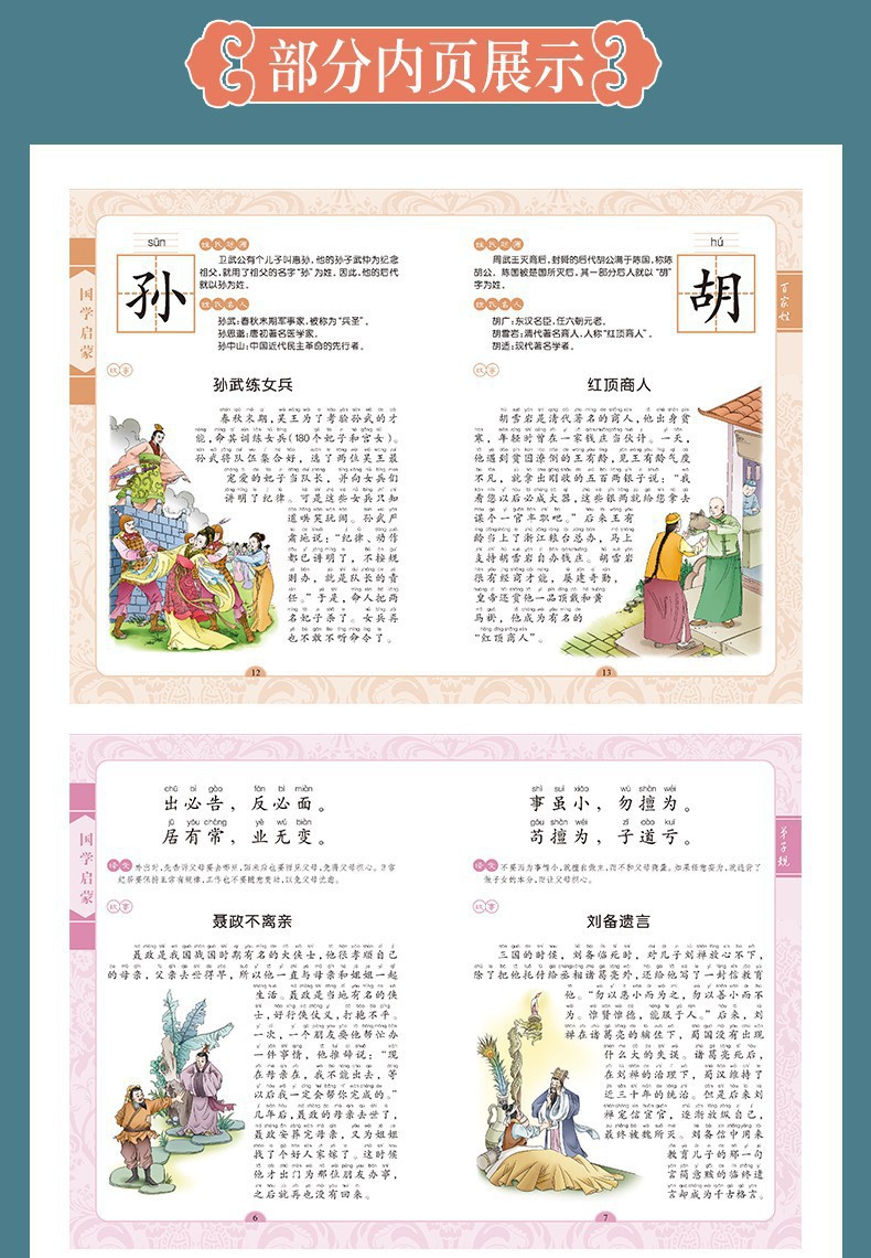 Wholesale of classic children's books on traditional Chinese culture with color illustrations and phonetic annotations, such as the Three-Character Classic and Thousand-Character Text